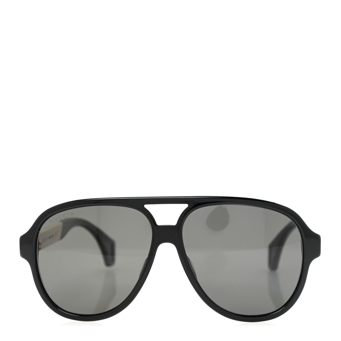 This is an authentic pair of GUCCI Aviator Web Sunglasses GG0463S in Black. These sunglasses feature acetate aviator rims in black with dark grey lenses. The black arms have a red and white web stripe and the Gucci logo.Follow this item for alerts. Gucci is a registered trademark of Gucci. FASHIONPHILE is not affiliated with Gucci.