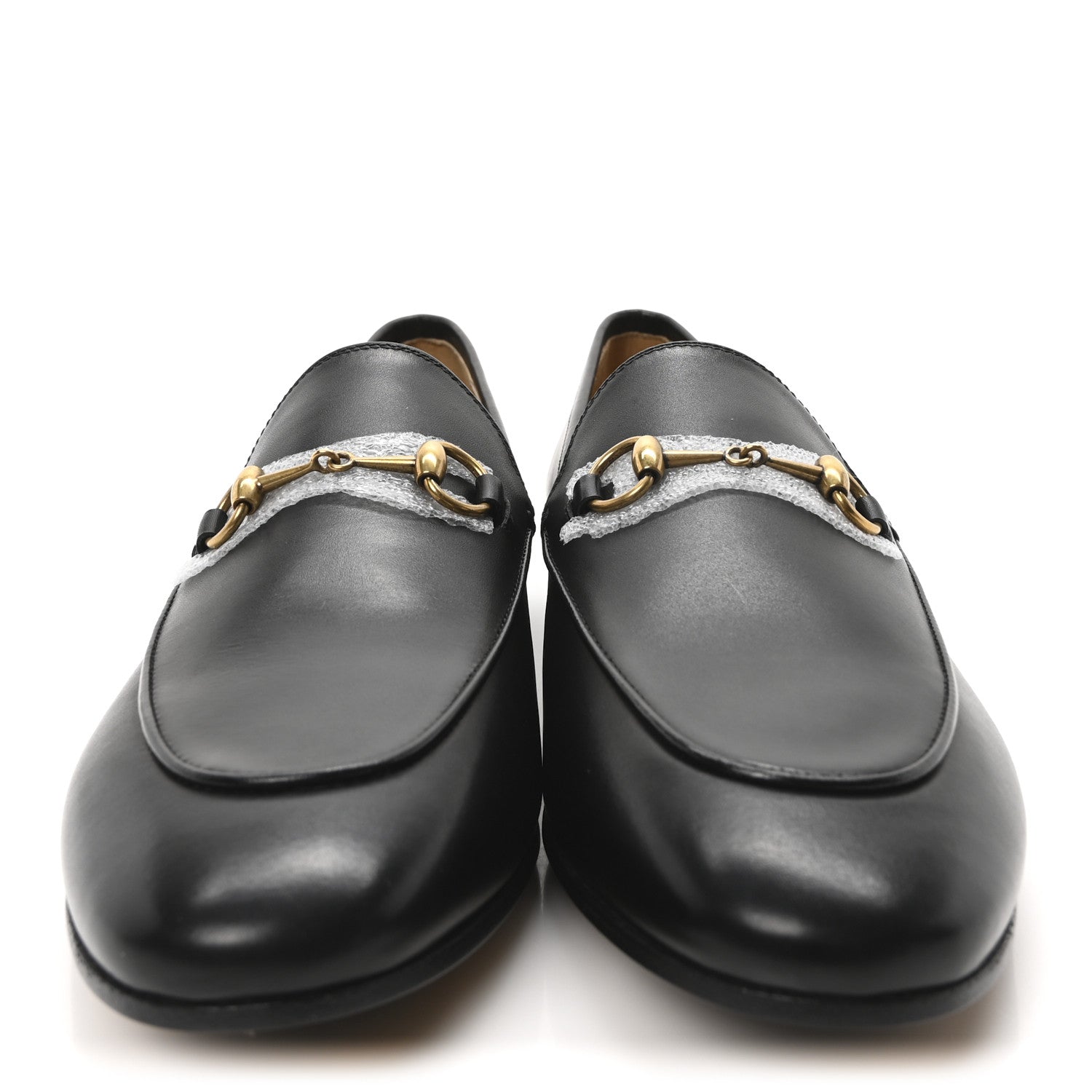 This is an authentic pair of GUCCI Betis Glamour Womens Jordaan Loafers size 41.5 in Black. These chic loafers are crafted of smooth black leather. They feature an aged gold horse bit embellishment, a rounded toe, and a 0.5 inch stacked heel.Follow this item for alerts. Gucci is a registered trademark of Gucci. FASHIONPHILE is not affiliated with Gucci.