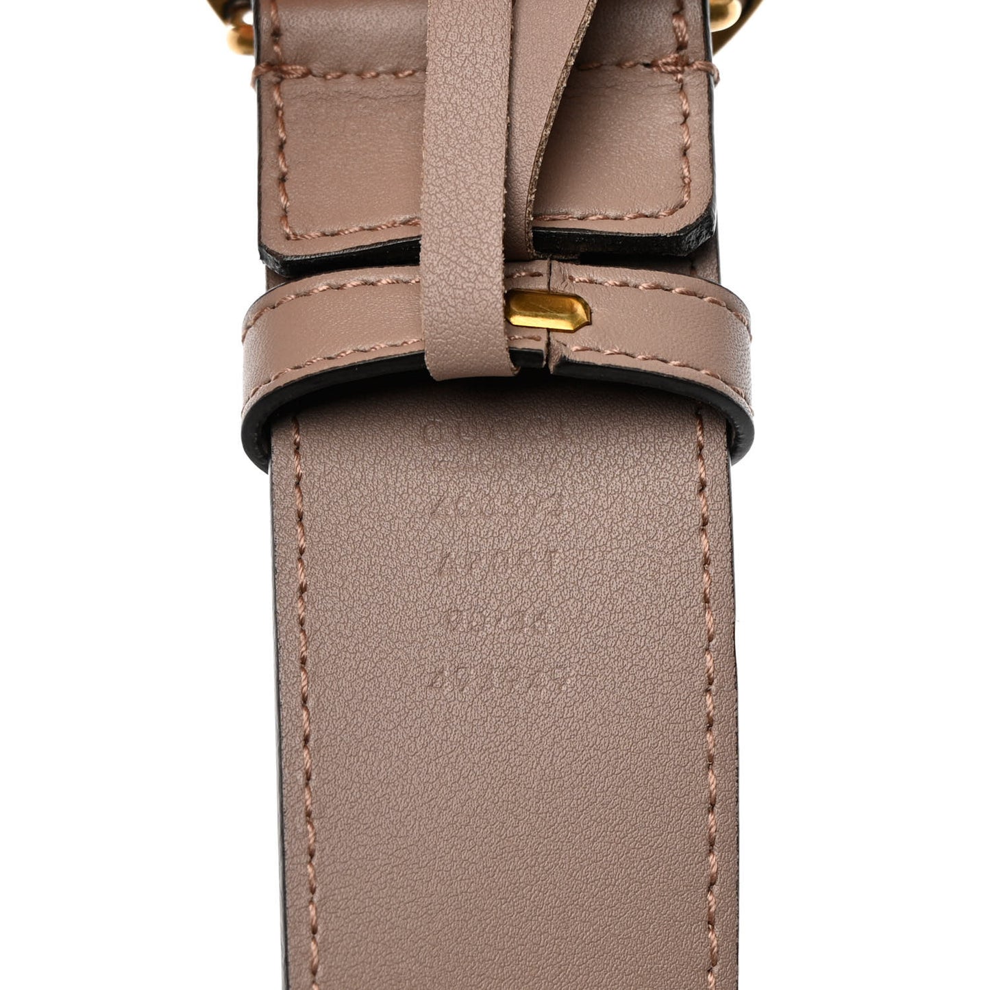 This is an authentic GUCCI Calfskin Double G 40mm Belt size 90 or 36 in Porcelain Rose. This stylish belt is crafted of calfskin leather in rose-toned beige. The belt features an interlocking GG aged gold buckle.Follow this item for alerts. Gucci is a registered trademark of Gucci. FASHIONPHILE is not affiliated with Gucci.