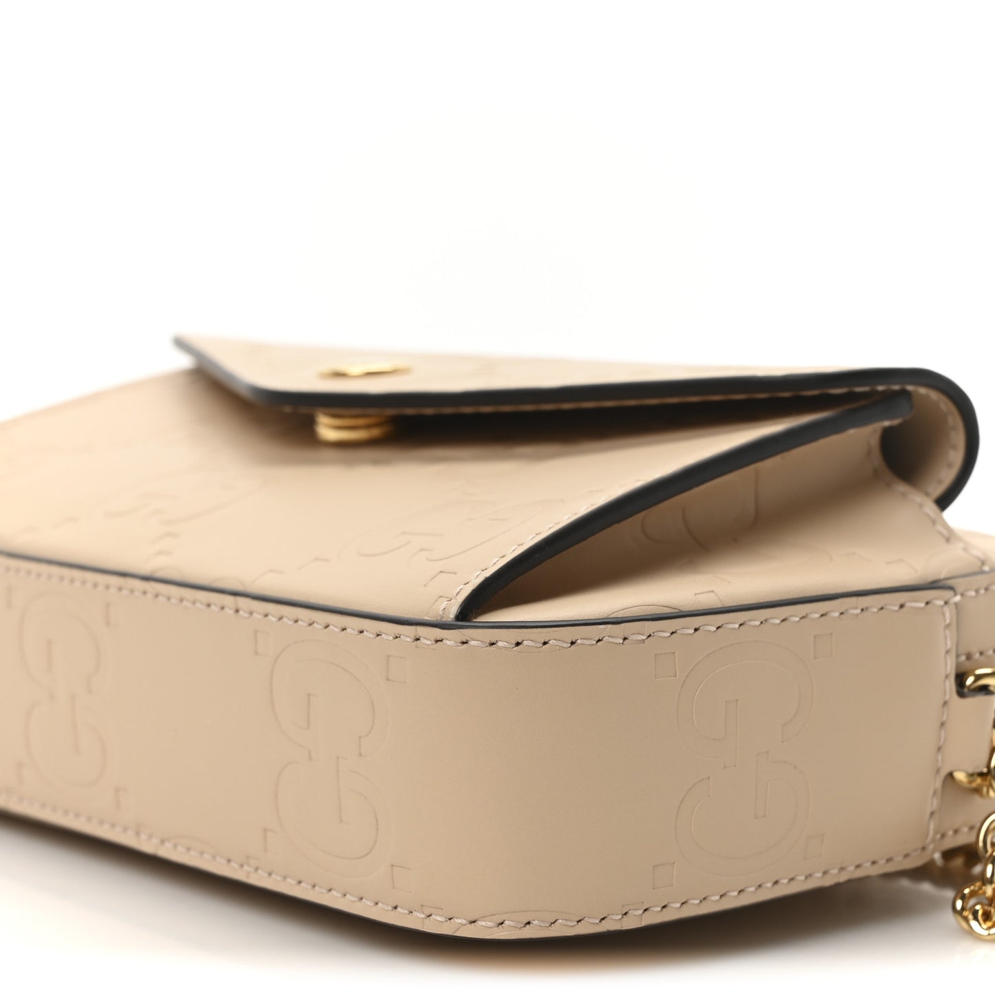 Gucci/ Bags/ Shoulder Bags /Gucci Calfskin GG Super Mini Debossed Chain Wallet Light Beige