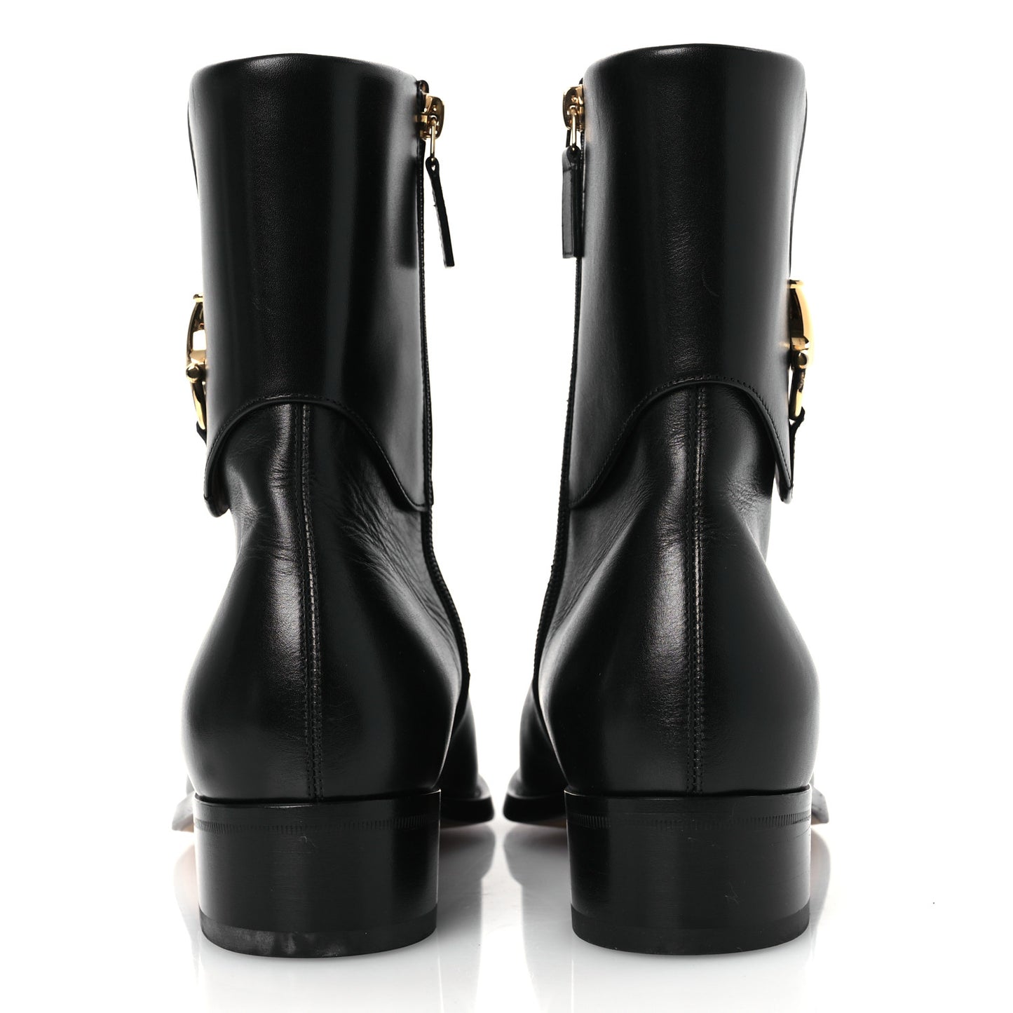 This is an authentic pair of GUCCI Calfskin Horsebit Mens Elizabeth Ankle Boots size 8 in Black. These stylish boots are crafted of calfskin leather in black. They feature a squared toe, an aged gold horse-bit detail, a zippered 8-inch shaft with a 1.75-inch heel.Follow this item for alerts. Gucci is a registered trademark of Gucci. FASHIONPHILE is not affiliated with Gucci.