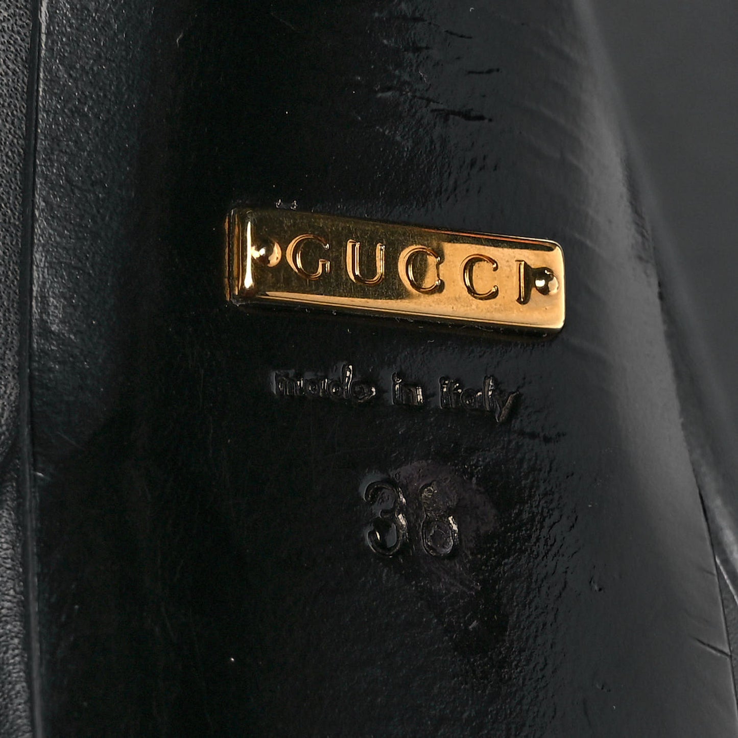 These are authentic GUCCI Calfskin Lifford Lace Up Platform Ankle Boots size 38 in Black. These stylish boots are crafted of smooth leather in black and feature speed lace eyelets in red, rugged soles, a 5.75 inch heel and 1.75 inch platform.Follow this item for alerts. Gucci is a registered trademark of Gucci. FASHIONPHILE is not affiliated with Gucci.