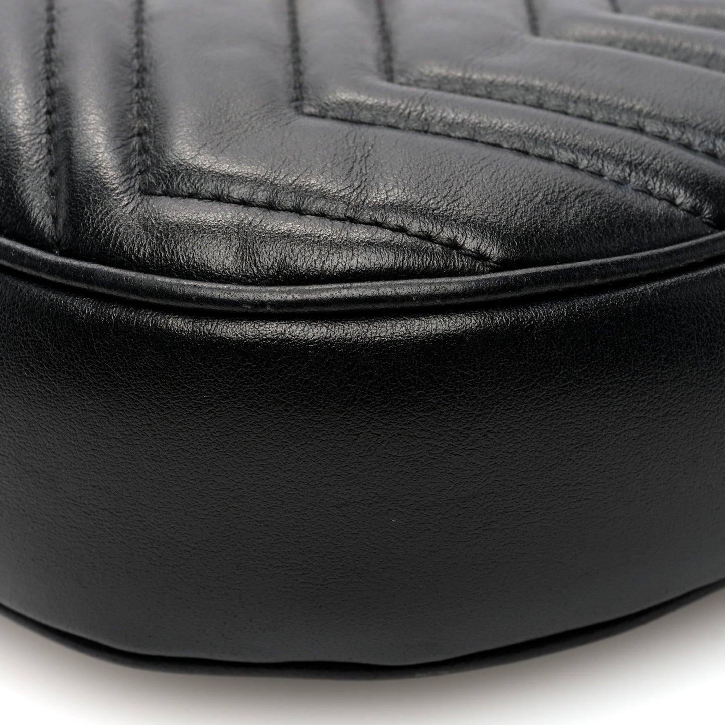 Calfskin Matelasse Chevron Mini GG Marmont Half Moon Hobo Black