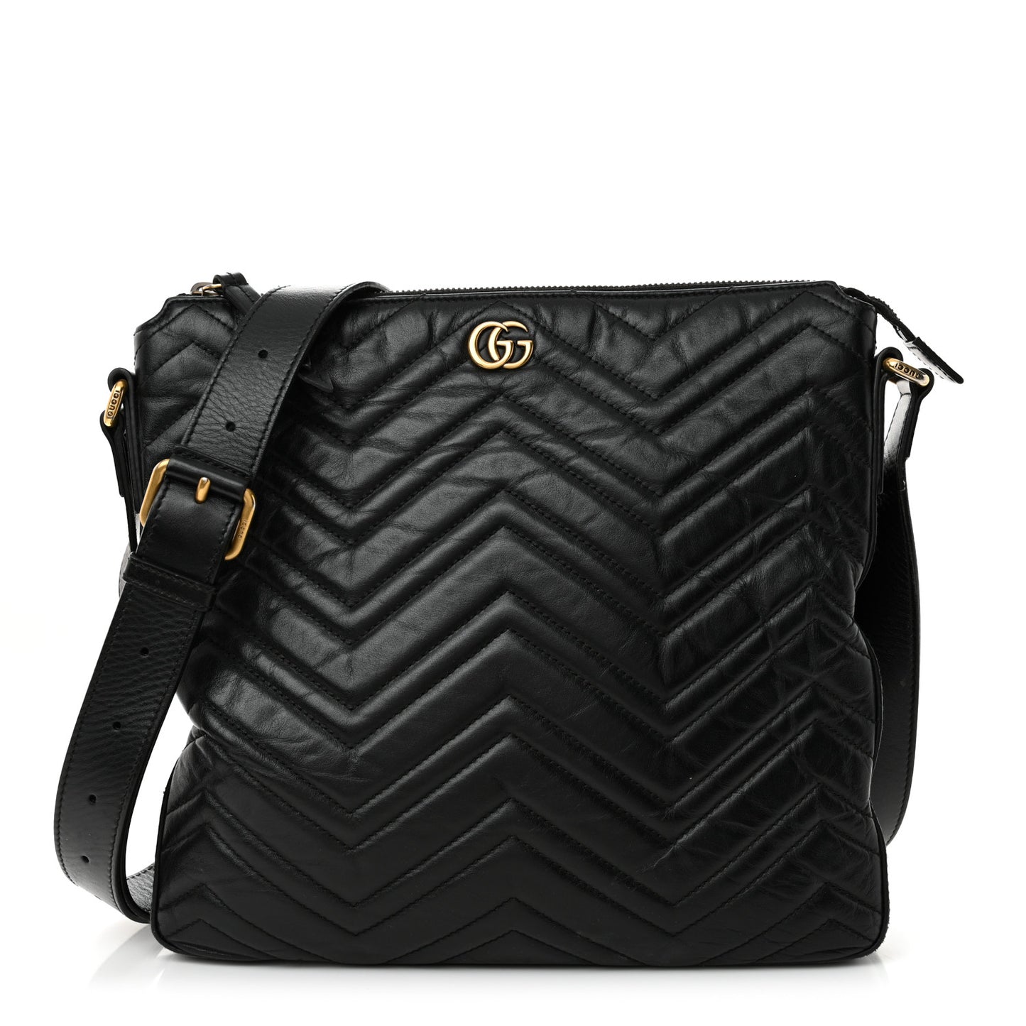 Gucci/ Bags/ Shoulder Bags /Gucci Calfskin Matelasse GG Marmont Flat Messenger Bag Black