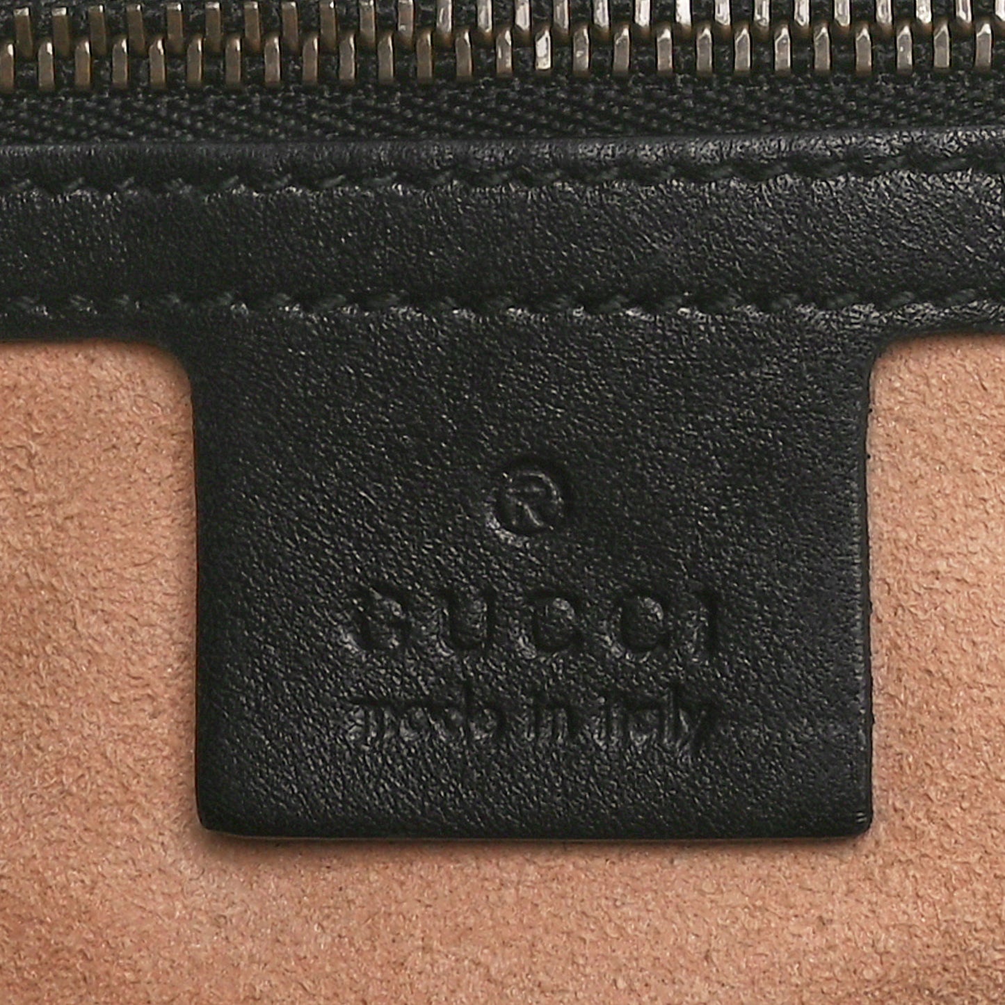 This is an authentic GUCCI Calfskin Matelasse Maxi GG Marmont Top Handle Bag in Black. This large shoulder bag is crafted of smooth and supple calfskin leather in black. This bag features an aged gold chain with a leather shoulder strap and an gold GG logo on the front. The bag opens to a beige microfiber interior with zipper and patch pockets.Follow this item for alerts. Gucci is a registered trademark of Gucci. FASHIONPHILE is not affiliated with Gucci.