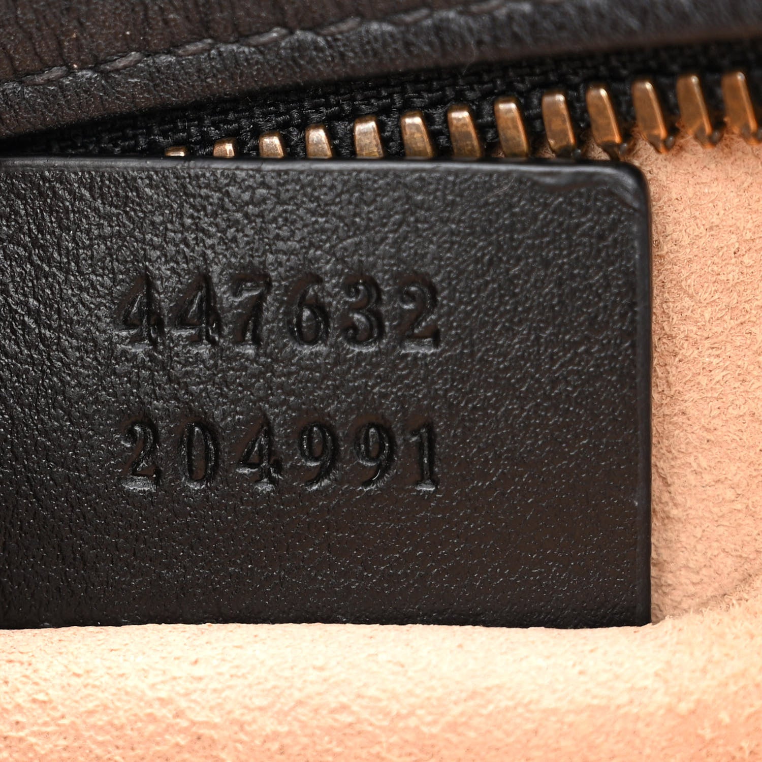 This is an authentic GUCCI Calfskin Matelasse Small GG Marmont Chain Shoulder Bag in Black. This shoulder bag is crafted of smooth and supple calfskin leather in black. This bag features a black leather shoulder strap with gold links and an aged gold GG logo on the front. The top zipper opens to a beige suede interior with a patch pocket.Follow this item for alerts. Gucci is a registered trademark of Gucci. FASHIONPHILE is not affiliated with Gucci.