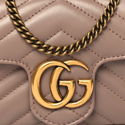 Calfskin Matelasse Super Mini GG Marmont Shoulder Bag Porcelain Rose