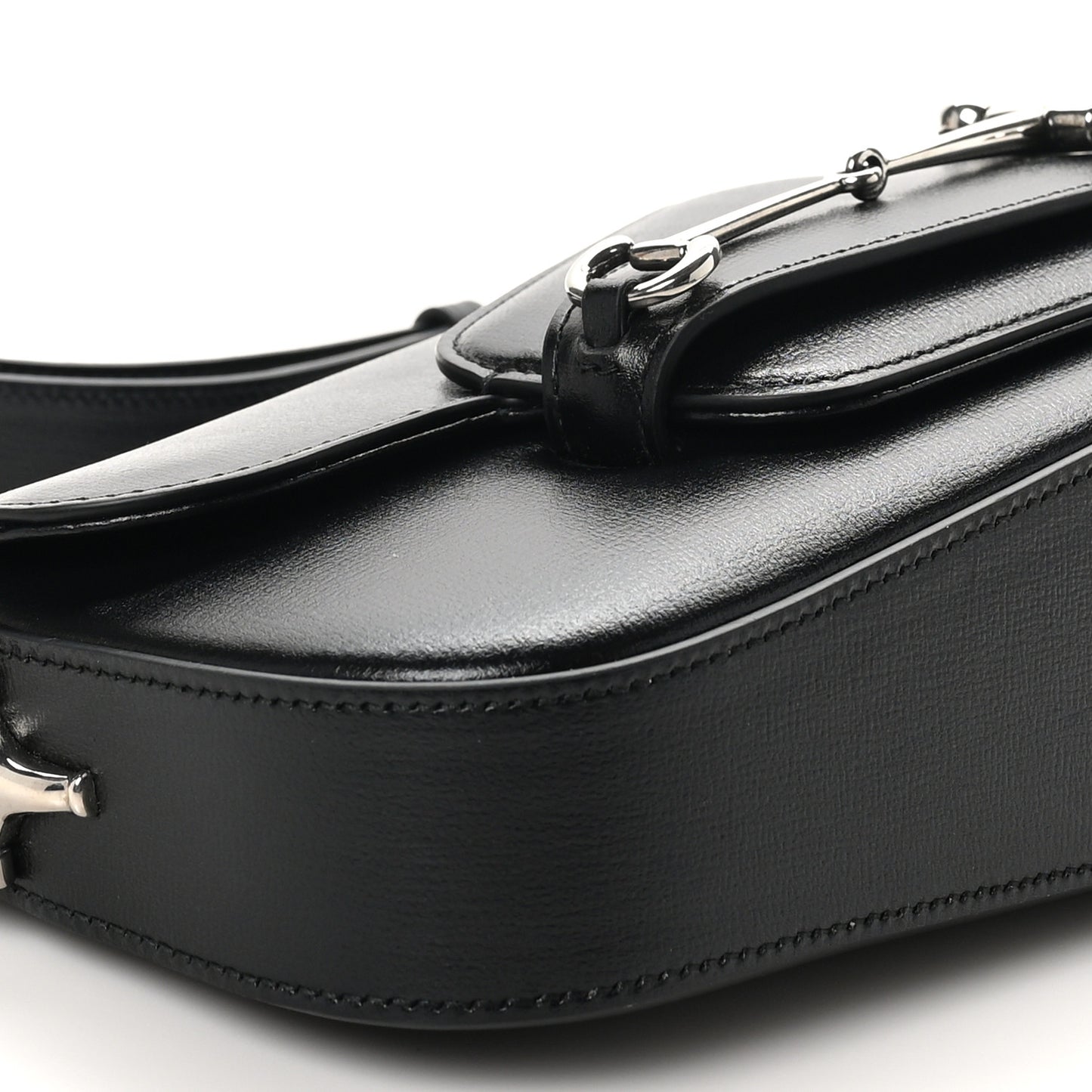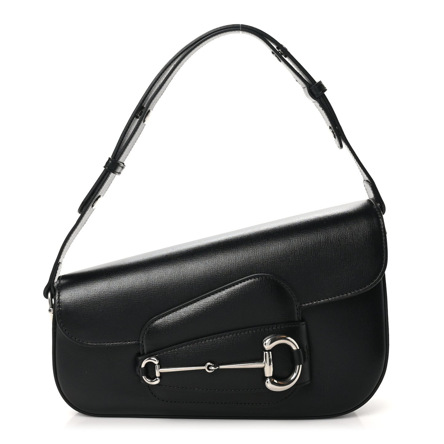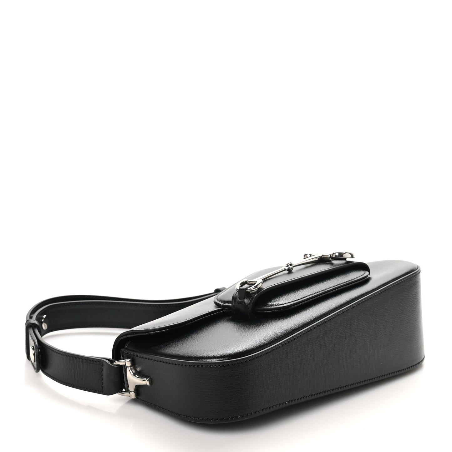 Gucci/ Bags/ Shoulder Bags /Gucci Calfskin Small Horsebit 1955 Asymmetric Shoulder Bag Black