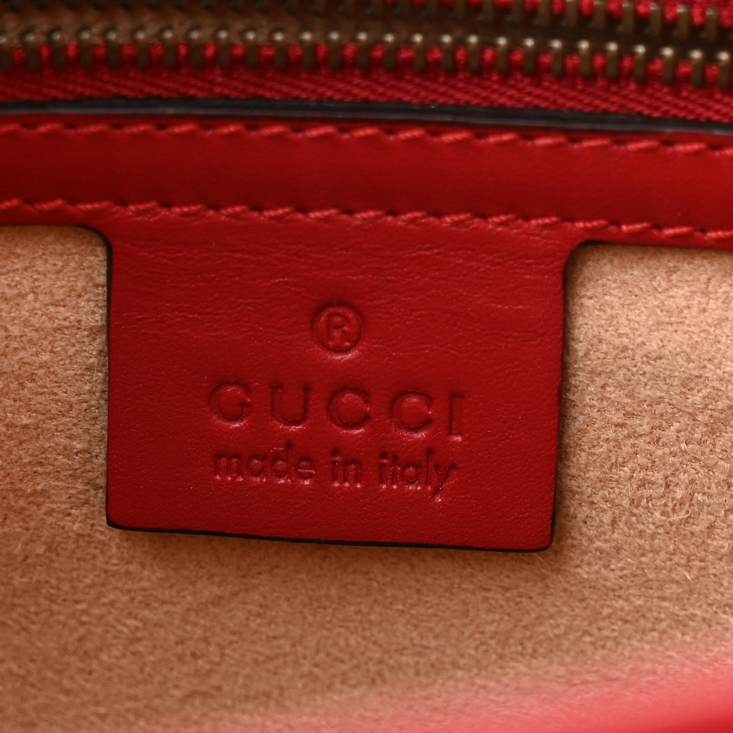 This is an authentic GUCCI Calfskin Sylvie Web Small Queen Margaret Top Handle Bag in Blue Agata, Hibiscus Red, Mystic White and Sugar Pink. This chic shoulder bag is crafted of calfskin leather in ivory, red and blue. The bag features a pink rolled leather top handle, an optional red, white and blue web stripe canvas shoulder strap, and an aged gold, crystal, and pearl encrusted bee on the flap. The bag opens with a press lock to a partitioned beige microfiber interior with zipper and patch pockets.Follow this item for alerts. Gucci is a registered trademark of Gucci. FASHIONPHILE is not affiliated with Gucci.