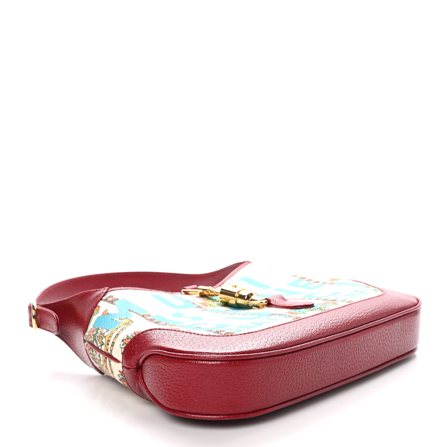 This is an authentic GUCCI Canvas Calfskin 100 Centennial Music Small Jackie 1961 Hobo in Ivory and Red. This hobo is crafted of white canvas with multicolored artwork and red leather trim. It features red cowhide leather trim and a looping shoulder strap with an optional strap extender. The thin crossover strap opens with a polished gold tone piston lock to a beige leather interior with zipper and patch pockets.Follow this item for alerts. Gucci is a registered trademark of Gucci. FASHIONPHILE is not affiliated with Gucci.