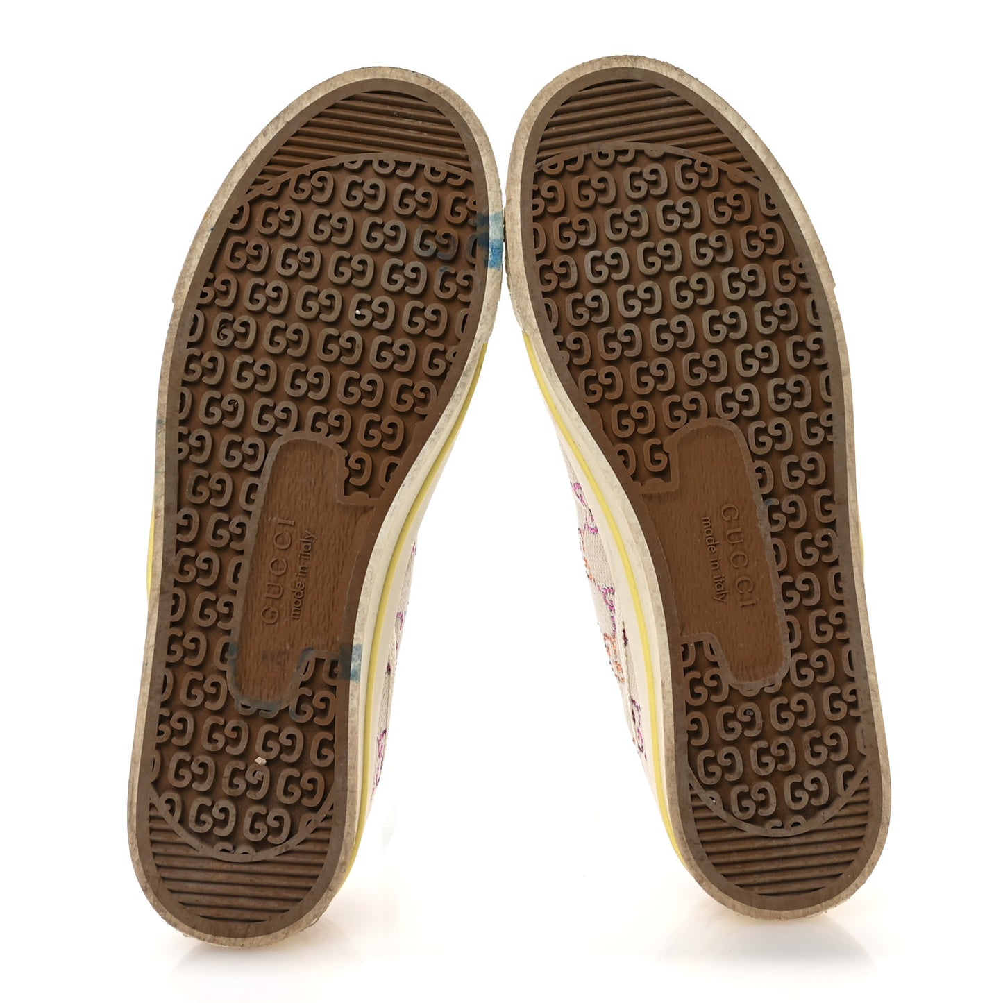 Canvas Lame Crystal GG Monogram Womens 1977 Tennis Sneakers 39 Gardenia Silver Mystic White