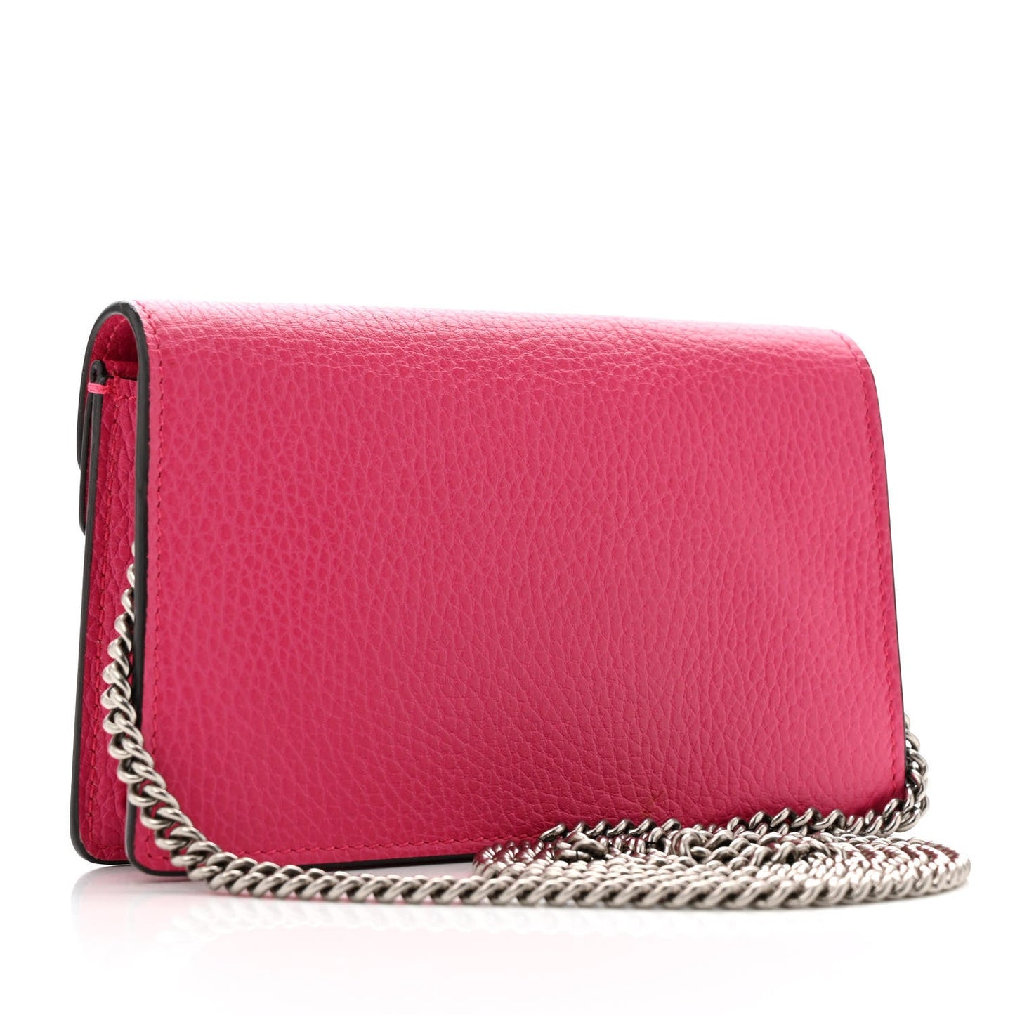 This is an authentic GUCCI Dollar Calfskin Crystal Super Mini Dionysus Shoulder Bag in Box Pink and Black Diamond. This petite bag is crafted of grained calfskin in pink. This shoulder bag features an aged silver chain shoulder strap and a silver textured horseshoe tiger spur closure encrusted with crystals. The double flap opens to a beige suede interior with a key ring.Follow this item for alerts. Gucci is a registered trademark of Gucci. FASHIONPHILE is not affiliated with Gucci.