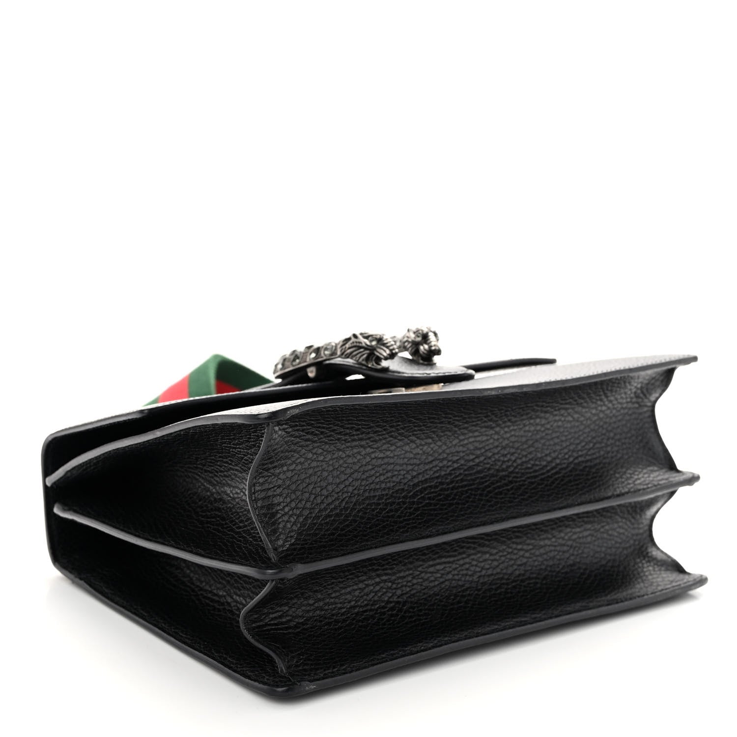 This is an authentic GUCCI Dollar Calfskin Crystal Web Medium Dionysus Bamboo Top Handle Bag in Black and Black Diamond. This stylish bag is crafted of grained calfskin leather in black. This bag features a top bamboo top handle, an optional as well as adjustable green and red striped canvas shoulder strap, and a crystal encrusted horseshoe closure with lion heads at the end. This opens to a beige fabric interior with a zipper compartment and patch pockets.Follow this item for alerts. Gucci is a registered trademark of Gucci. FASHIONPHILE is not affiliated with Gucci.