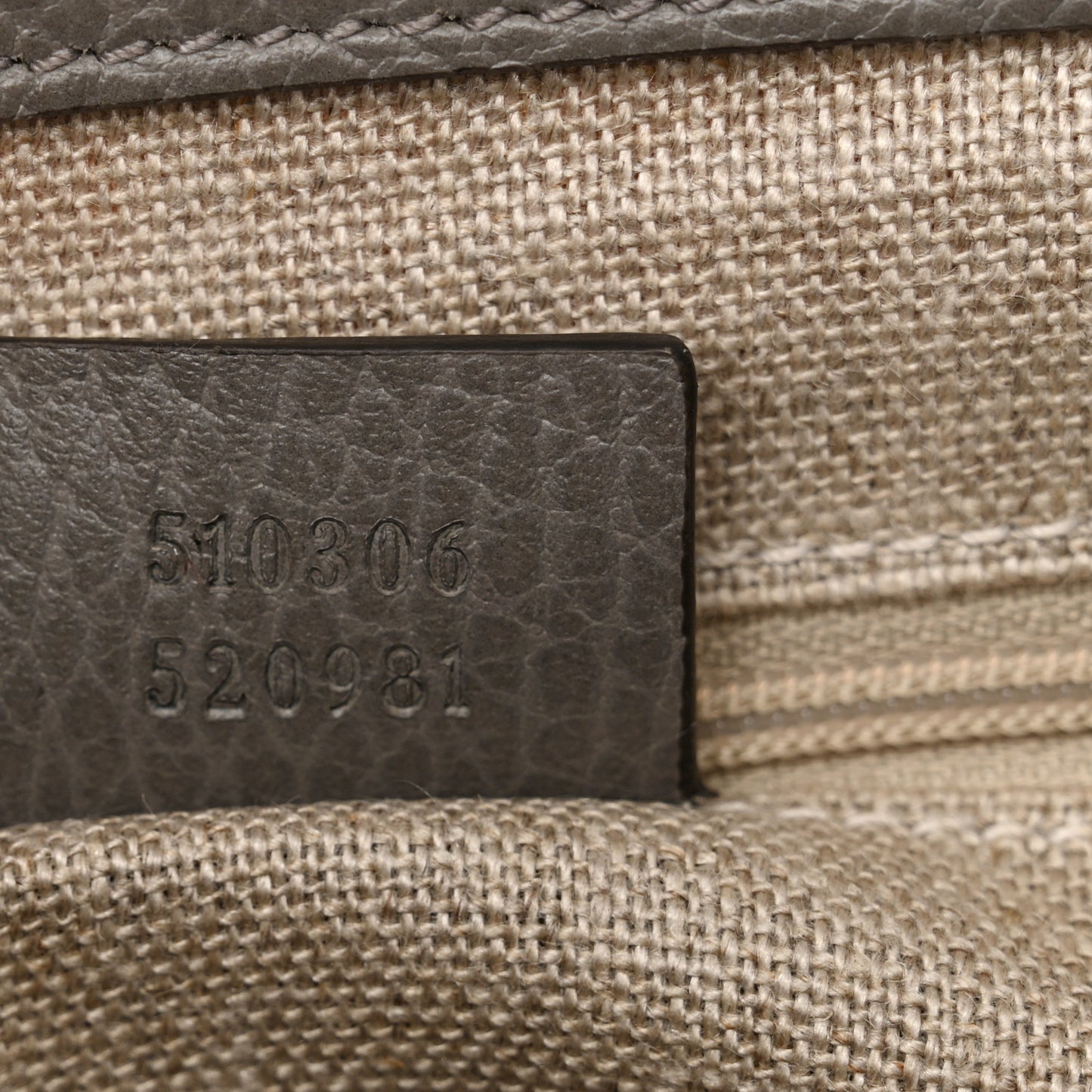 This is an authentic GUCCI Dollar Calfskin Interlocking G Top Handle Shoulder Bag in Loess. This chic shoulder bag is crafted of grained calfskin leather in gray. The bag has a waist-length shoulder strap in light gold and a facing flap with a polished light gold interlocking GG emblem. The flap opens to a partitioned beige fabric interior with a zipper and patch pockets.Follow this item for alerts. Gucci is a registered trademark of Gucci. FASHIONPHILE is not affiliated with Gucci.