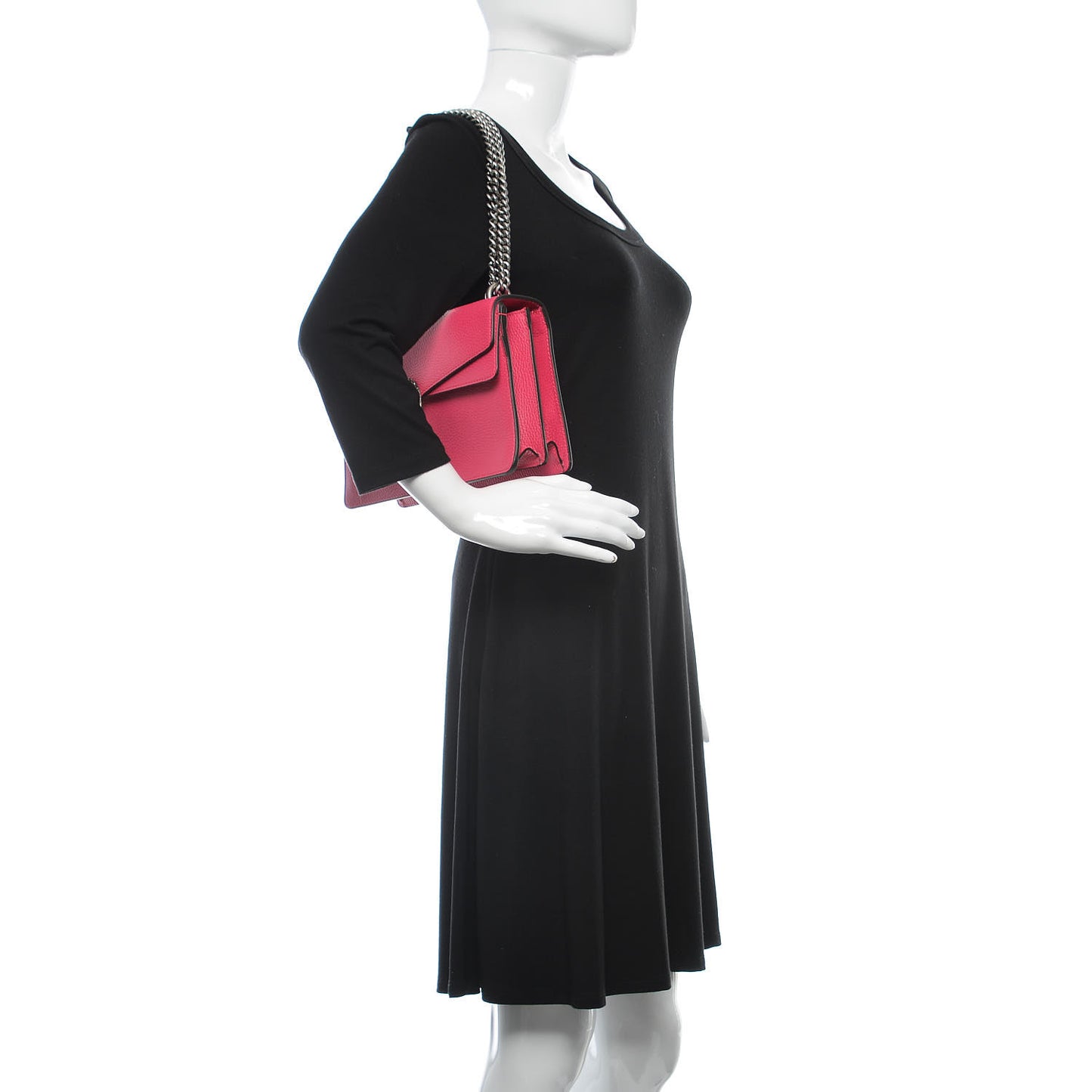 This is an authentic GUCCI Dollar Calfskin Small Dionysus Shoulder Bag Box in Pink. This stylish bag is crafted of textured calfskin leather and features an aged silver chain shoulder strap, and a textured and crystal gem-encrusted horseshoe closure with tiger heads at the end. This opens to a flap pocket and the main area is a beige fabric interior with a central zipper pocket.Follow this item for alerts. Gucci is a registered trademark of Gucci. FASHIONPHILE is not affiliated with Gucci.