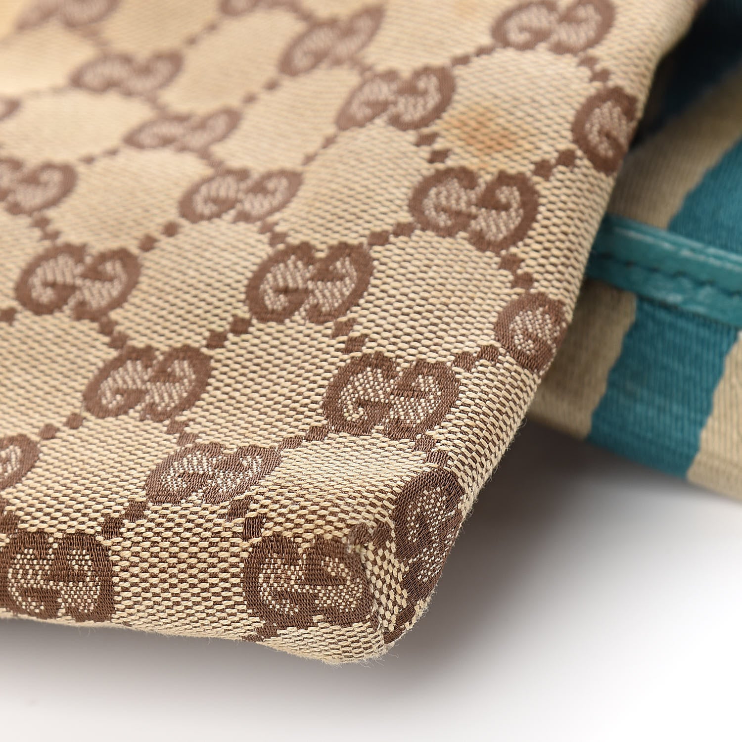 This is an authentic GUCCI Monogram Web Belt Bag in Turquoise. This chic belt bag is finely crafted of classic brown on beige Gucci GG monogram canvas. The bag features a green/blue leather flap pocket with leather trim, a zipper pocket, and an adjustable striped canvas belt strap with silver hardware. The interior is a combination of canvas and blue fabric, perfect for essentials on-the-go with stylish sophistication, from Gucci!Follow this item for alerts. Gucci is a registered trademark of Gucci. FASHIONPHILE is not affiliated with Gucci.