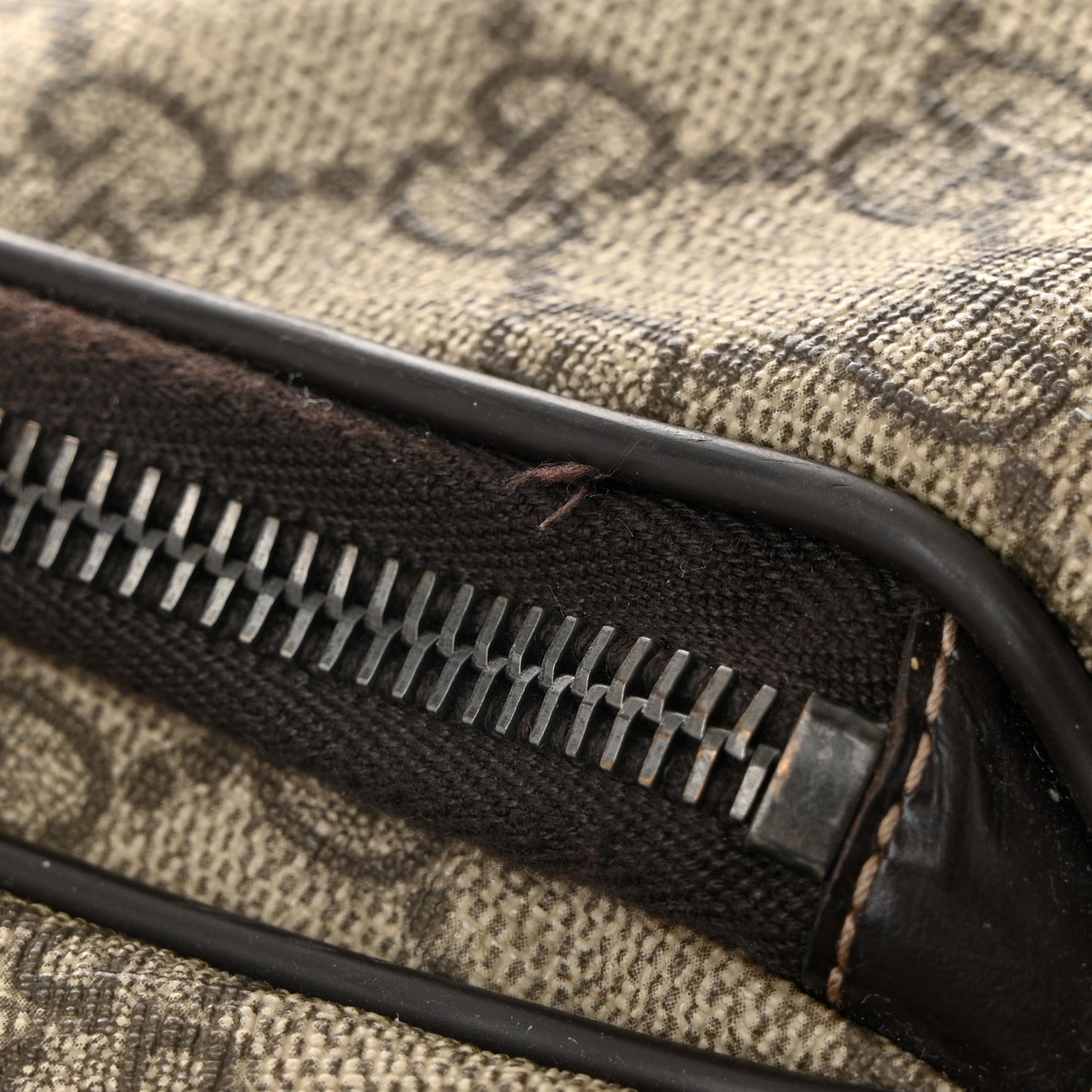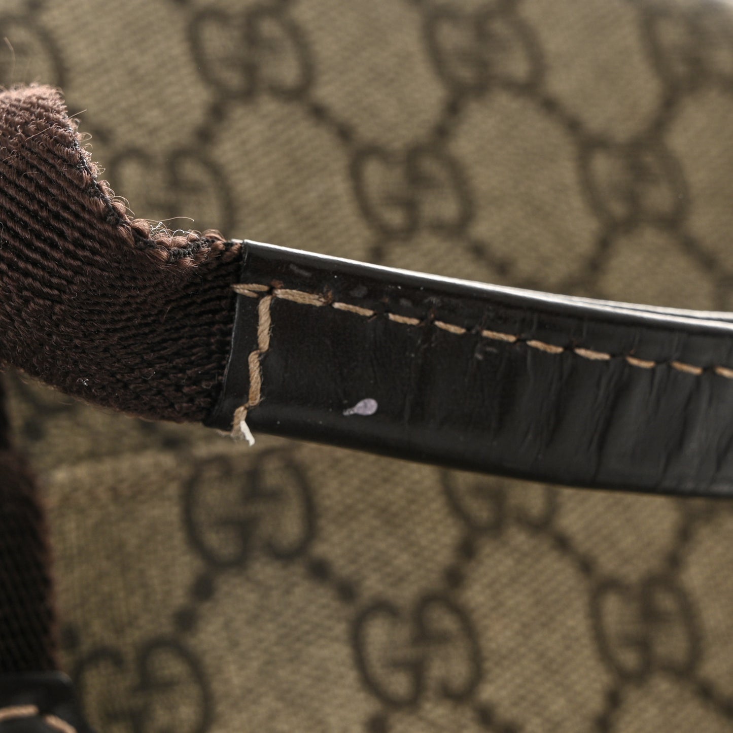 This is an authentic GUCCI GG Plus Monogram Interlocking G Medium Backpack in Dark Brown. This backpack is crafted of classic Gucci GG monogram coated canvas and features an interlocking GG logo on the large front pocket, adjustable nylon shoulder straps, and brown leather trim. The zipper opens to a spacious nylon interior with a zipper pocket and patch pockets.Follow this item for alerts. Gucci is a registered trademark of Gucci. FASHIONPHILE is not affiliated with Gucci.