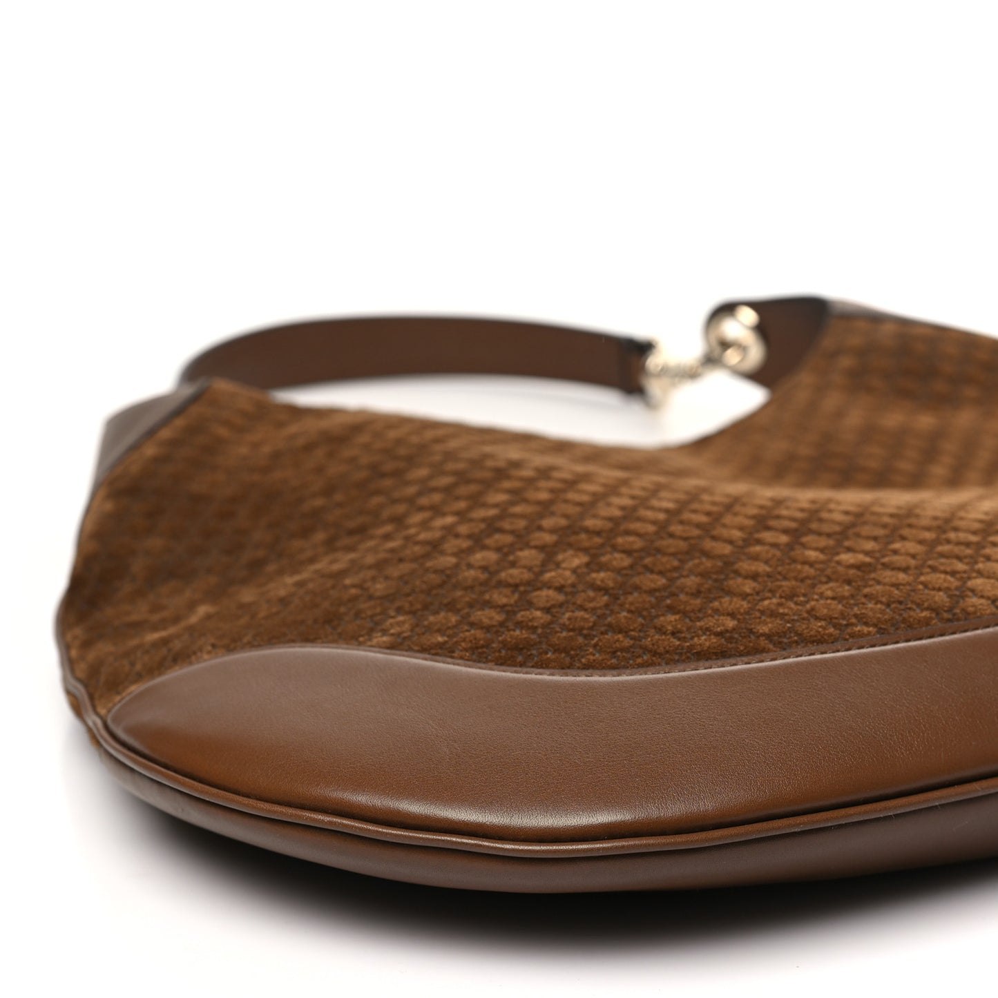 This is an authentic GUCCI GG Suede B Large Shoulder Bag in Brown. This stylish hobo is crafted of brown monogram embossed suede. It features smooth leather trim, a leather strap, and gold hardware. The top is open to a smooth leather interior with a removable zipper pouch.Follow this item for alerts. Gucci is a registered trademark of Gucci. FASHIONPHILE is not affiliated with Gucci.