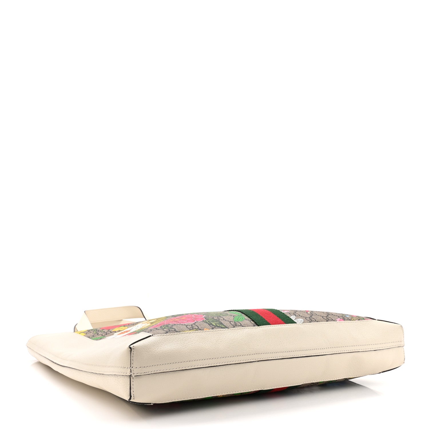 GG Supreme Monogram Flora Web Ophidia Vertical Shopping Tote White