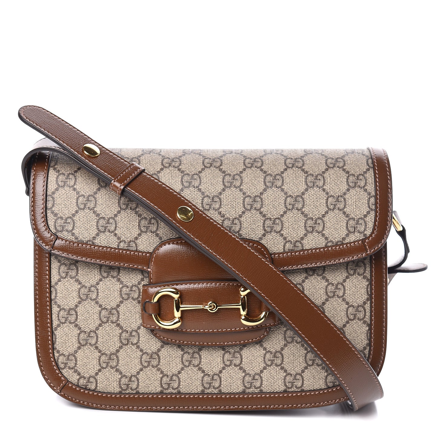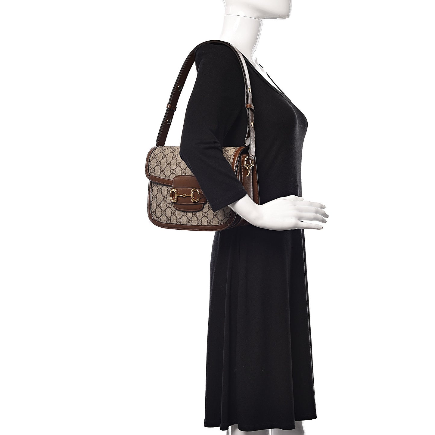 Gucci/ Bags/ Shoulder Bags /Gucci GG Supreme Monogram Horsebit 1955 Shoulder Bag Beige Brown Sugar