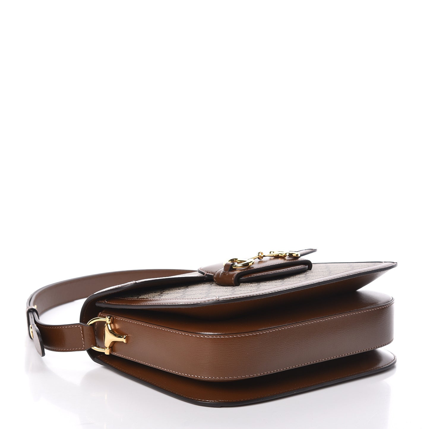GG Supreme Monogram Horsebit 1955 Shoulder Bag Beige Brown Sugar