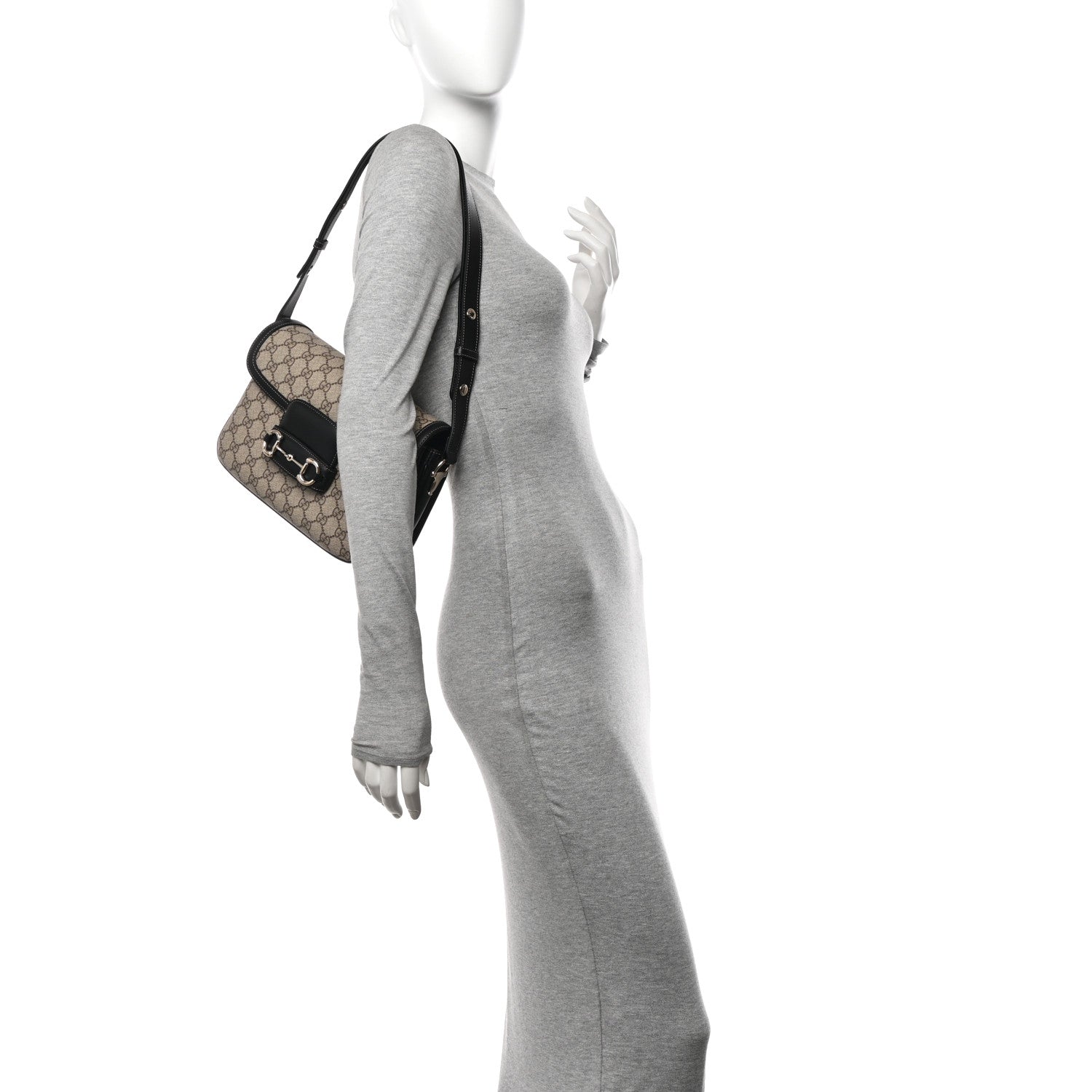 GG Supreme Monogram Horsebit 1955 Soft Small Shoulder Bag Beige Black