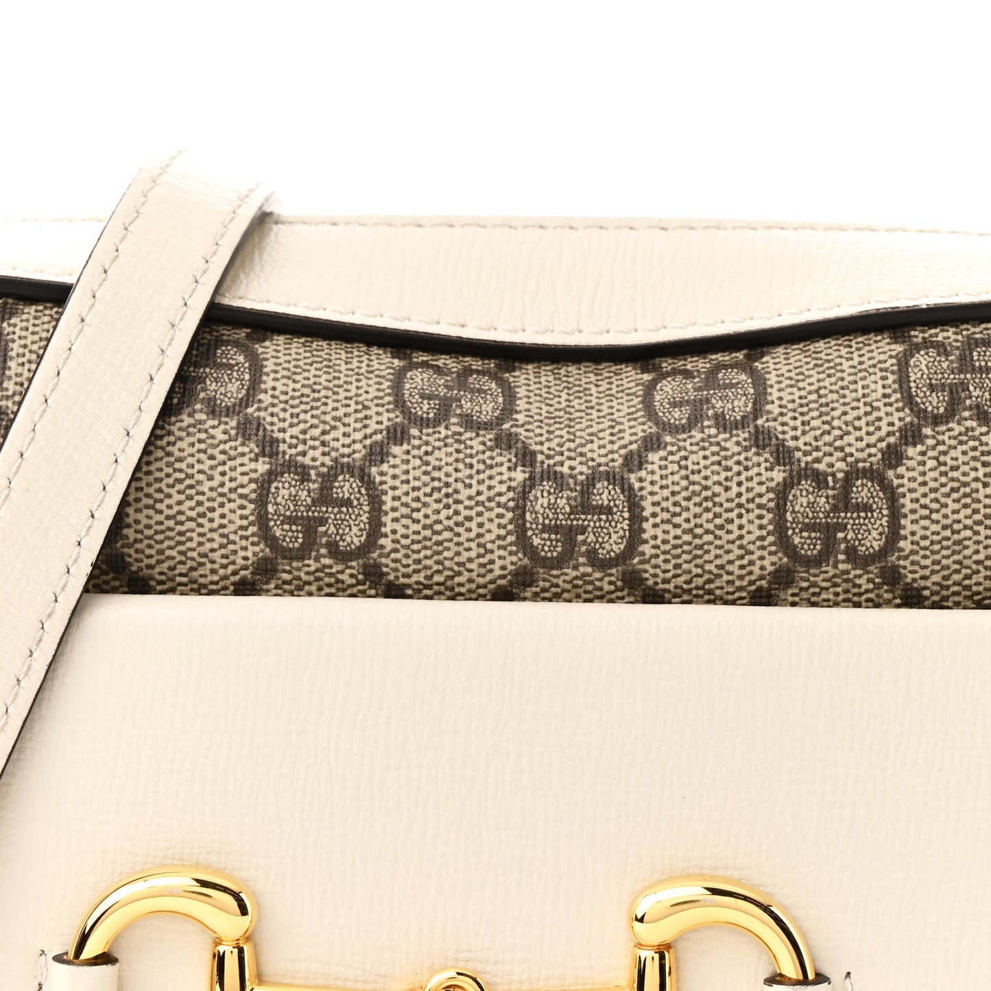 GG Supreme Monogram Small Horsebit 1955 Shoulder Bag Beige Mystic White