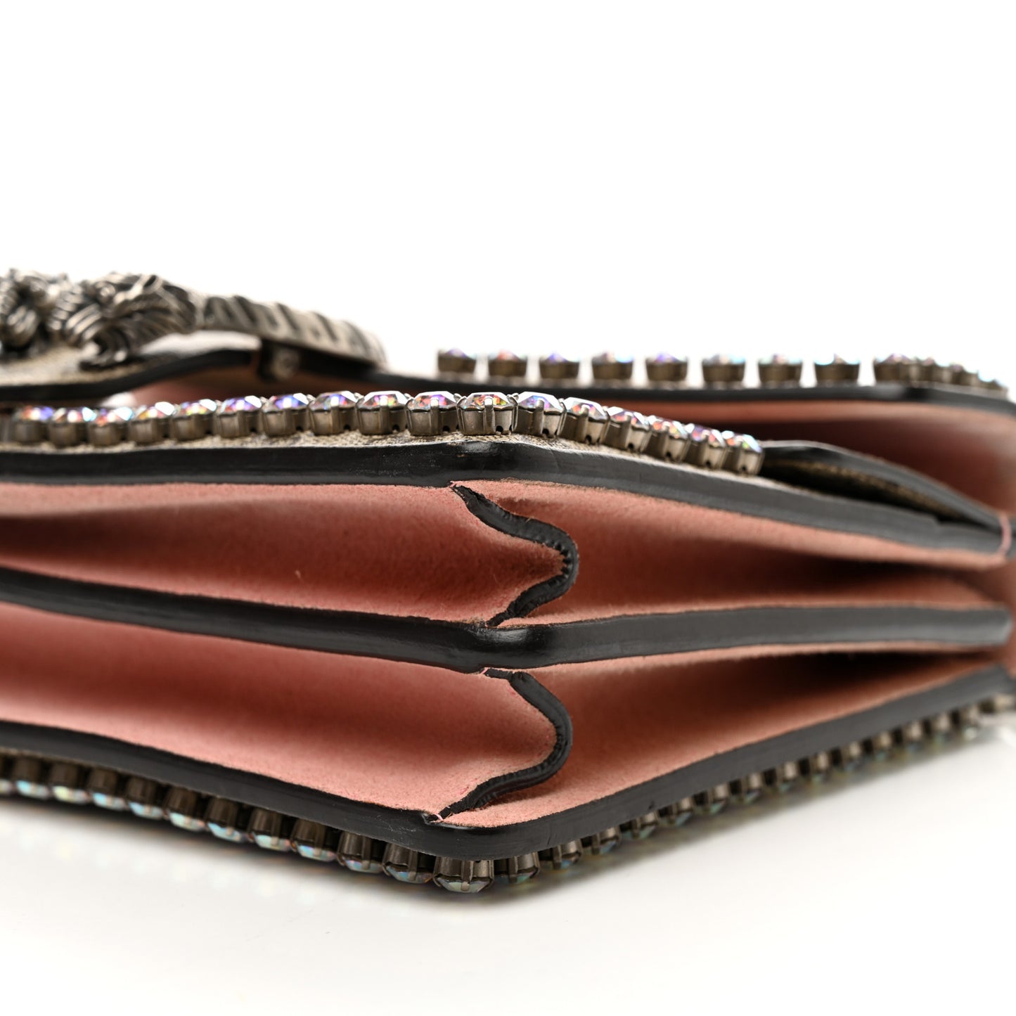 GG Supreme Monogram Suede Crystal Small Dionysus Shoulder Bag Beige Ebony Light Peonia