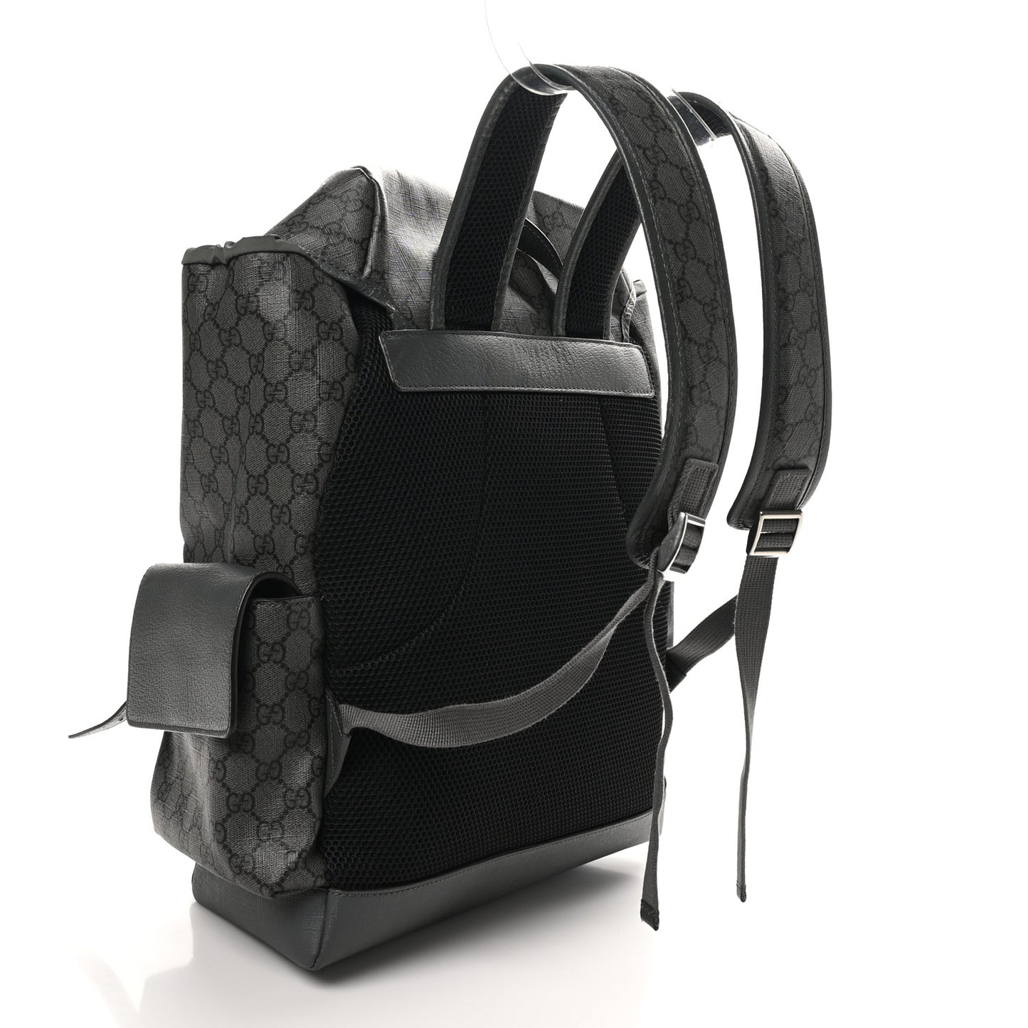 GG Supreme Monogram Textured Dollar Calfskin Medium Ophidia Double Buckle Backpack Grey Black Graphite Grey