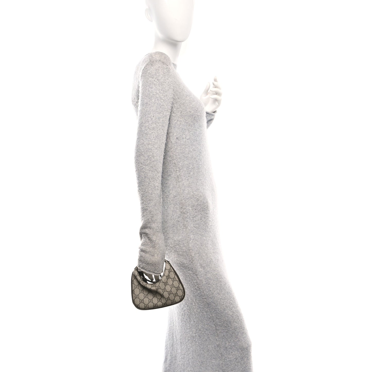 This is an authentic GUCCI GG Supreme Monogram Textured Calfskin Web Mini Attache Shoulder Bag in Beige, Ebony and New Acero. This bag is crafted of Gucci GG monogram coated canvas and features a G shaped hook closure. The top zipper opens up to a beige interior.Follow this item for alerts. Gucci is a registered trademark of Gucci. FASHIONPHILE is not affiliated with Gucci.