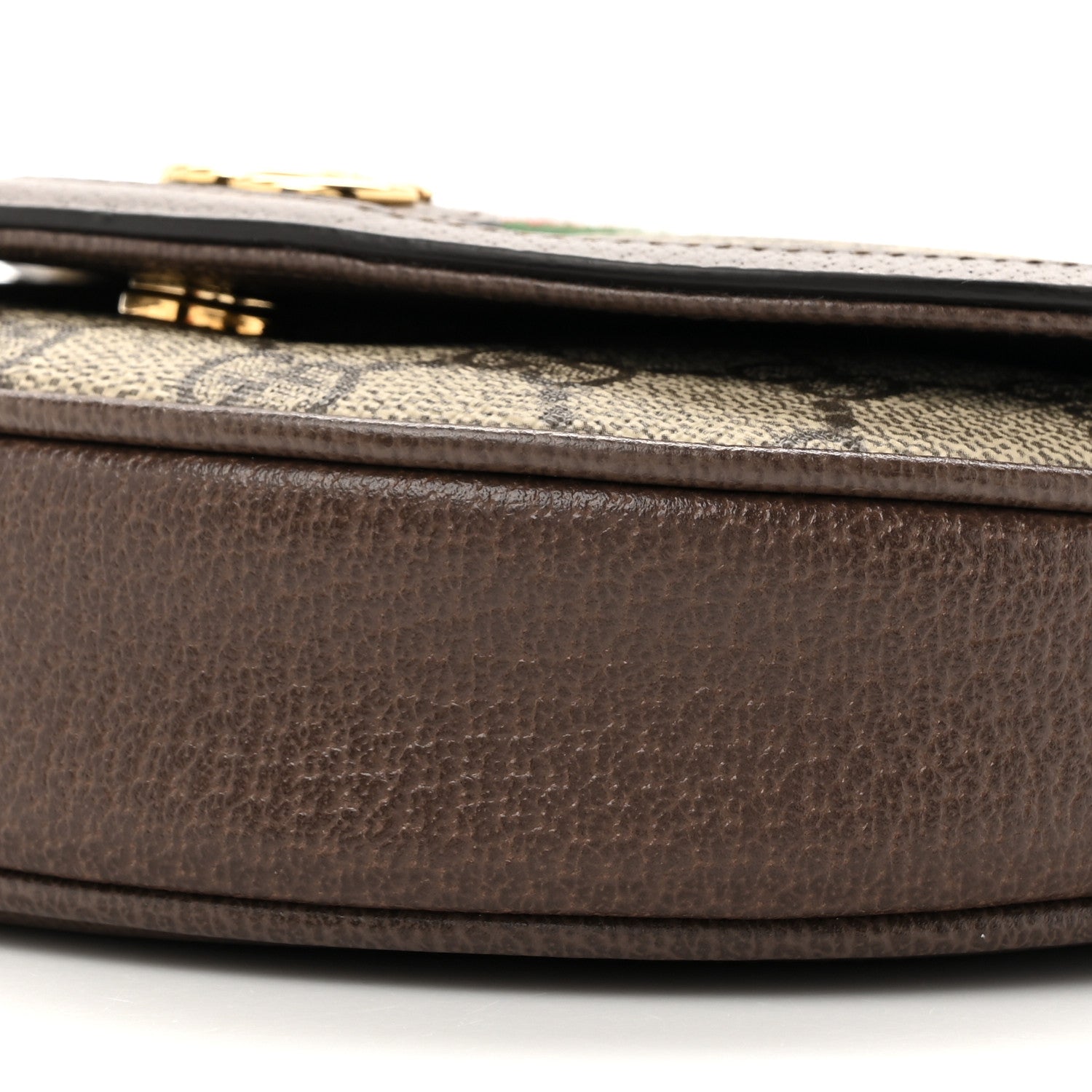 GG Supreme Monogram Textured Dollar Calfskin Web Mini Ophidia Flap Shoulder Bag Beige Ebony New Acero
