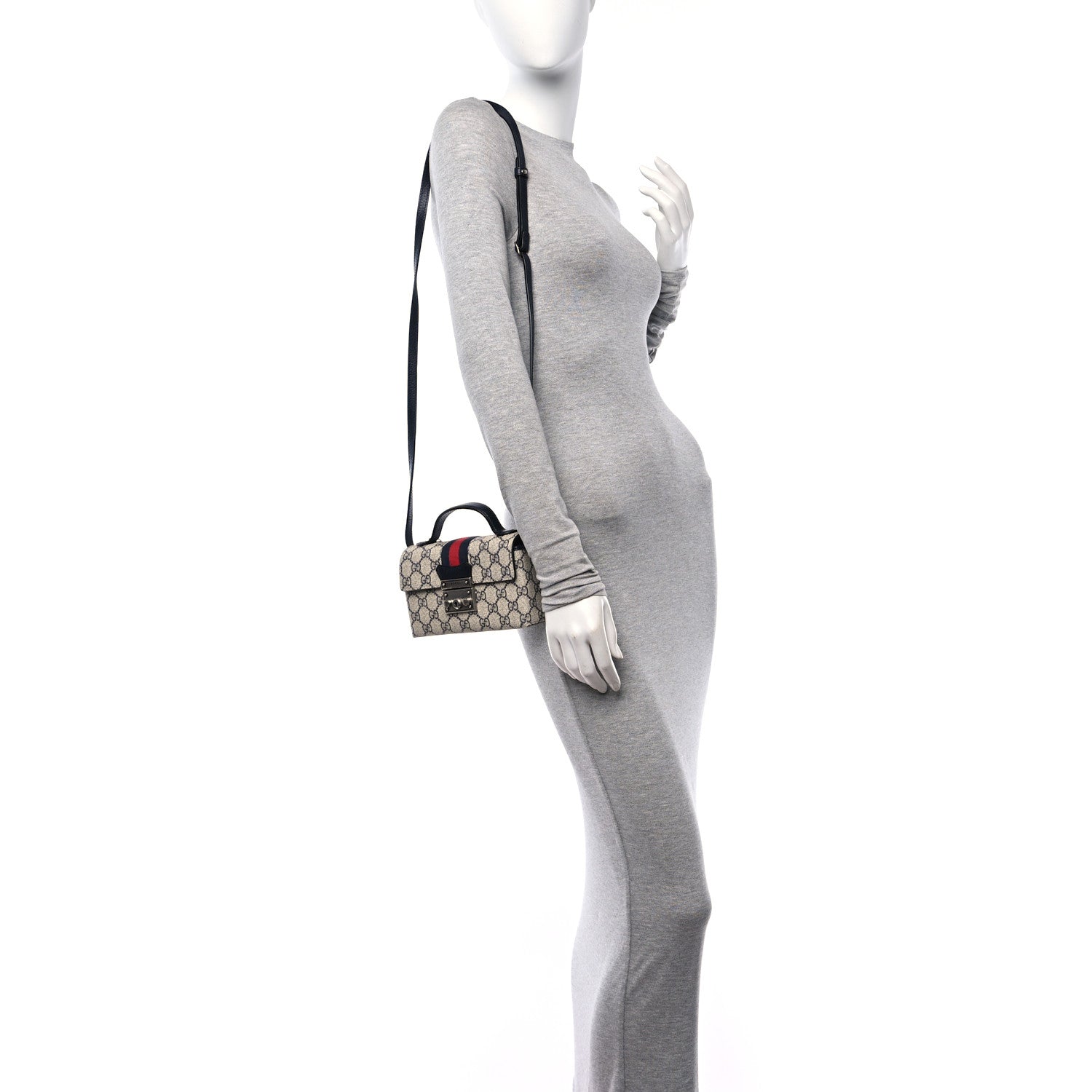 Gucci/ Bags/ Shoulder Bags /Gucci GG Supreme Monogram Textured Dollar Calfskin Web Mini Padlock Top Handle Shoulder Bag Beige Blue