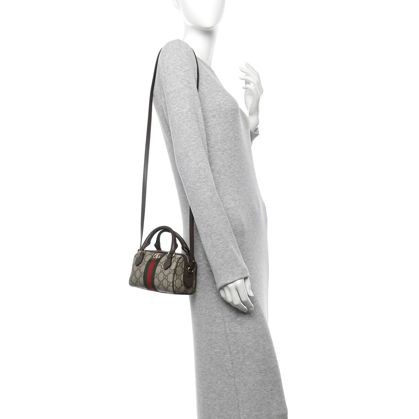 Gucci/ Bags/ Shoulder Bags /Gucci GG Supreme Monogram Textured Dollar Calfskin Web Super Mini Ophidia Top Handle Bowler Bag Beige Ebony New Acero