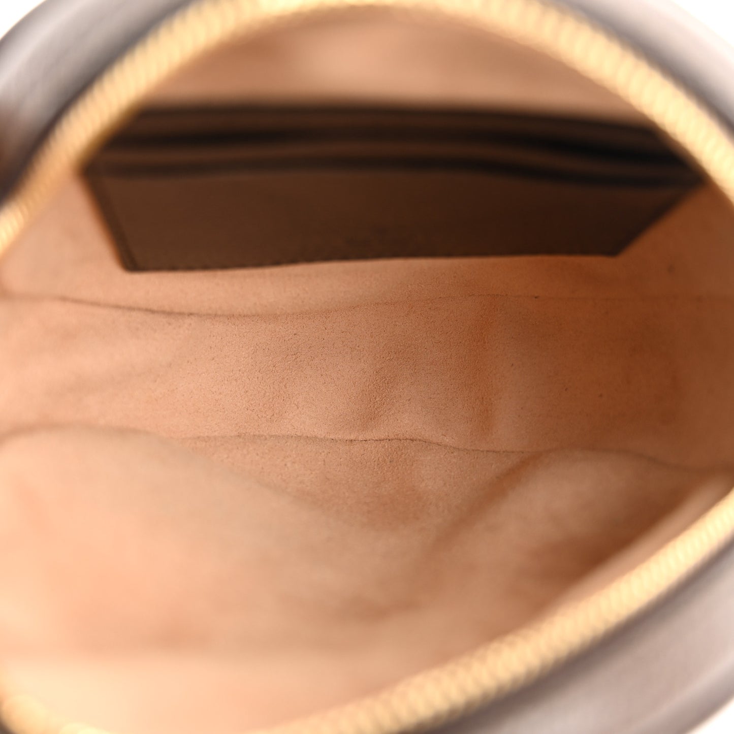 This is an authentic GUCCI GG Supreme Monogram Web Ophidia Circle Wristlet in Beige and New Acero. This chic round bag is finely crafted of brown on beige Gucci GG monogram coated canvas with brown leather trim. The wristlet features a leather wrist strap, signature red and green web stripe down the center, and gold hardware. The zip top opens to a compact microfiber interior with card slots.Follow this item for alerts. Gucci is a registered trademark of Gucci. FASHIONPHILE is not affiliated with Gucci.