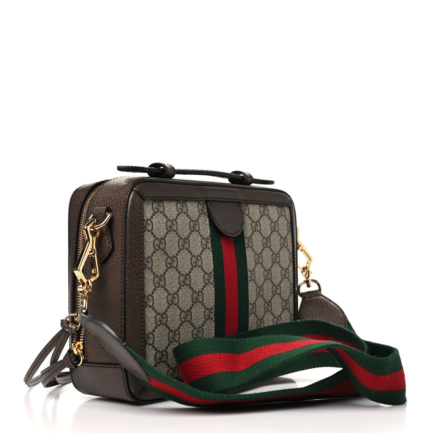 Gucci/ Bags/ Shoulder Bags /Gucci GG Supreme Monogram Web Small Ophidia Top Handle Shoulder Bag Brown