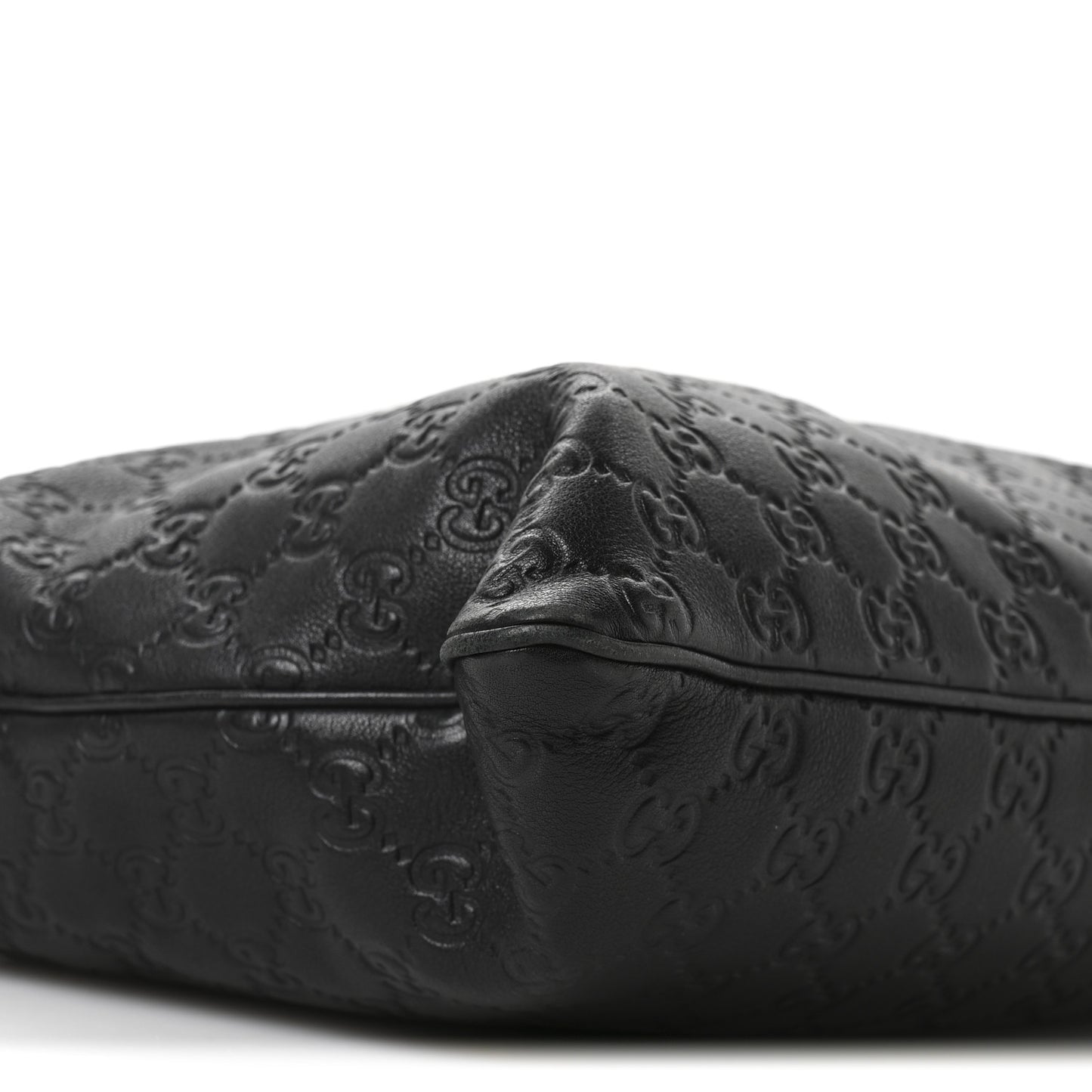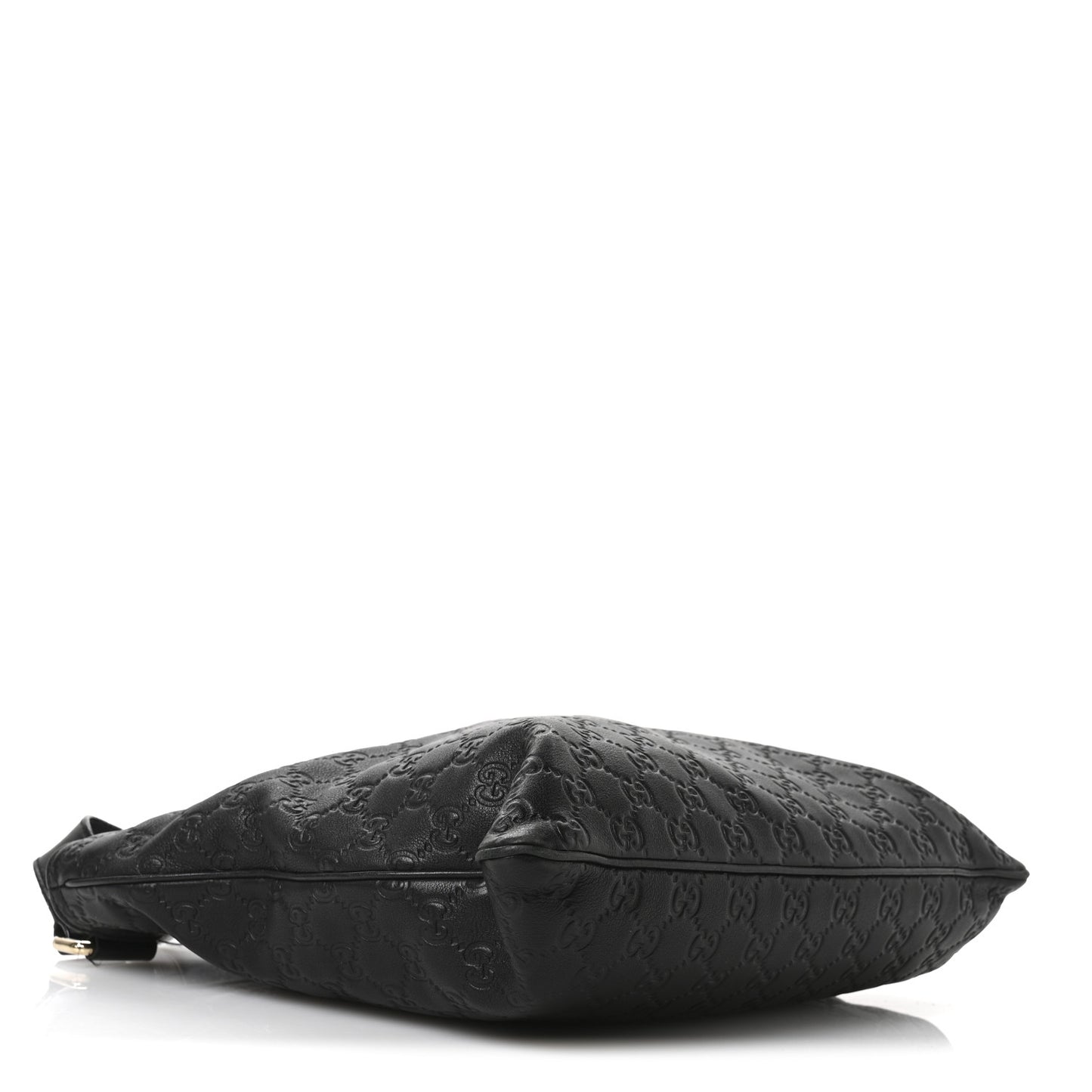 This is an authentic GUCCI Guccissima Medium Flat Messenger Bag in Black. This stylish bag is crafted of smooth Gucci GG monogram embossed Guccissima leather in black. This bag features an adjustable crossbody strap and silver hardware. The top zipper opens to a gucci logo fabric interior with zipper and patch pockets.Follow this item for alerts. Gucci is a registered trademark of Gucci. FASHIONPHILE is not affiliated with Gucci.