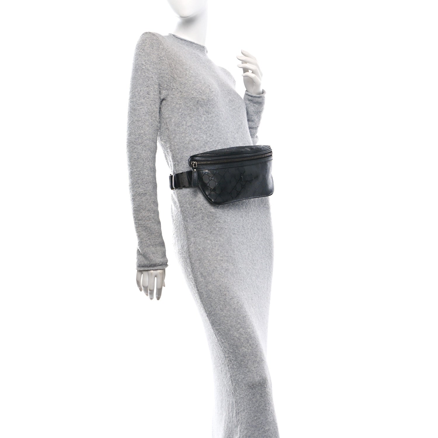 This is an authentic GUCCI Imprime Monogram Belt Bag in Black. This chic belt bag is finely crafted of black Gucci GG monogram coated canvas. The bag features a large facing zipper, an adjustable canvas belt strap with silver hardware, and a black fabric interior with a flat pocket.Follow this item for alerts. Gucci is a registered trademark of Gucci. FASHIONPHILE is not affiliated with Gucci.