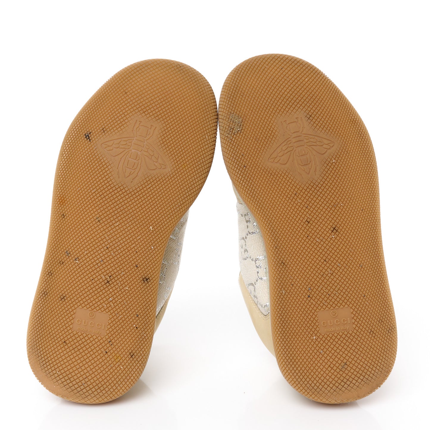 Gucci/ Accessories/ Shoes /Gucci Lame Canvas Nubuck GG Monogram Womens Screener 50mm Sneakers 35 Gardenia Silver Dusty Milk White Mystic White