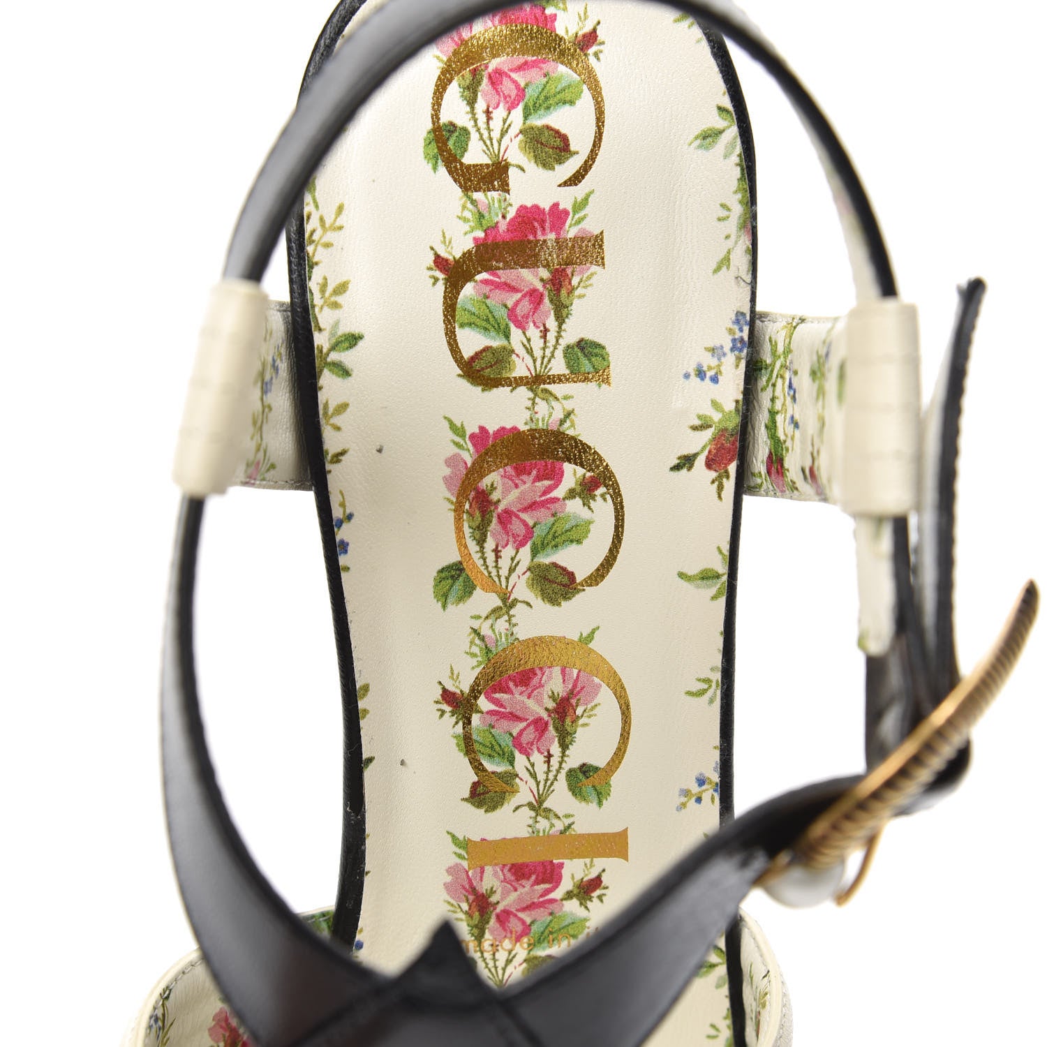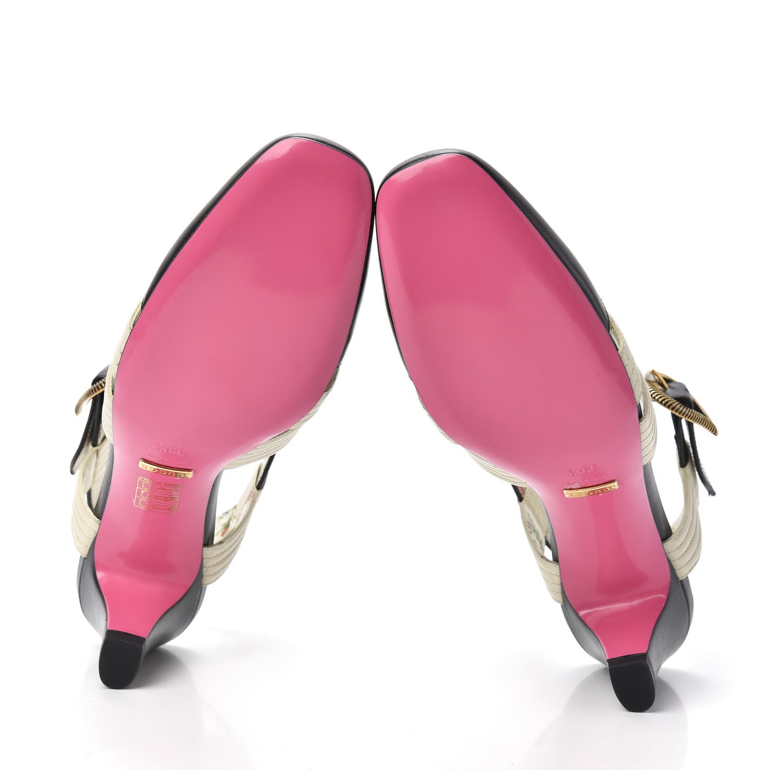 Gucci/ Accessories/ Shoes /Gucci Malaga Kid T-Strap Mid Heel Sandals 39.5 Black White