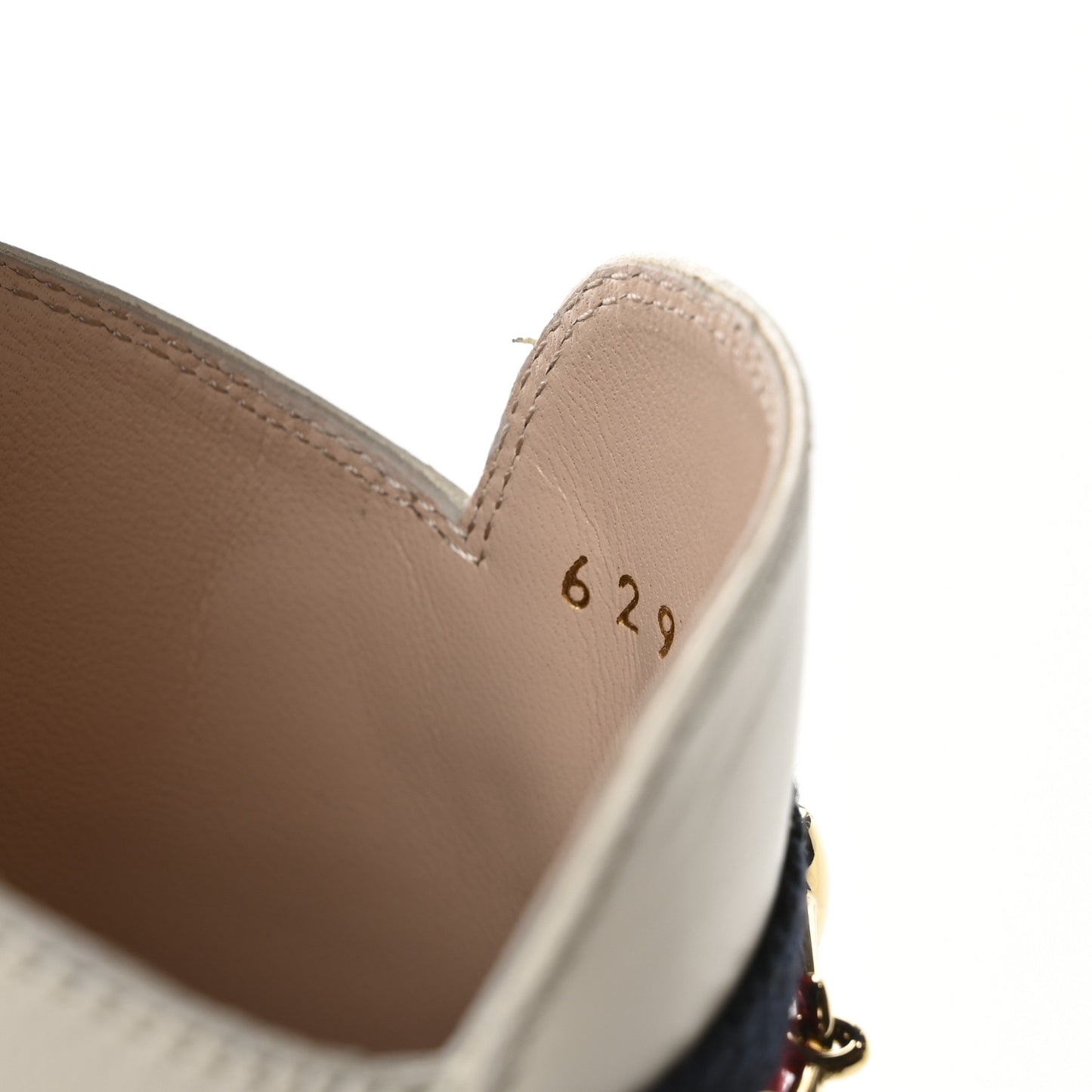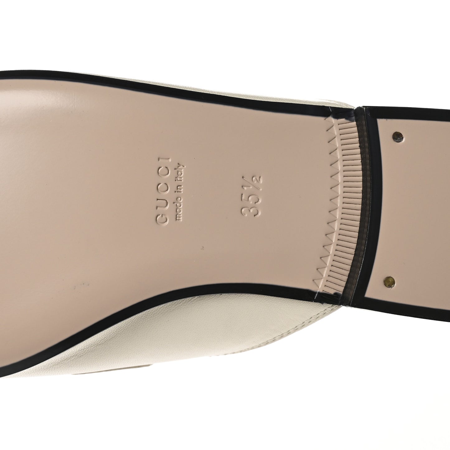 This is an authentic pair of GUCCI Malaga Kid Web Women's Princetown Slippers size 35.5 in Mystic White. These fun loafers are crafted of smooth white calfskin leather. They feature an aged gold horse bit embellishment, a red and blue web stripe, and a rounded toe.Follow this item for alerts. Gucci is a registered trademark of Gucci. FASHIONPHILE is not affiliated with Gucci.