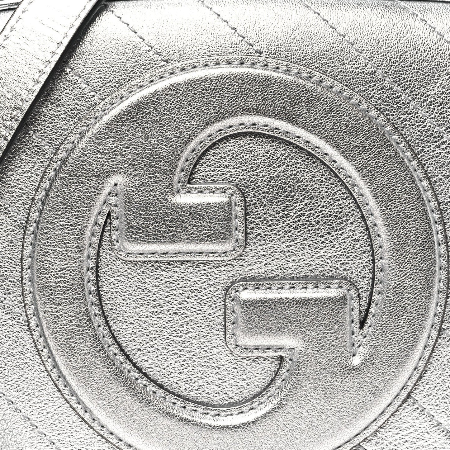 This is an authentic GUCCI Metallic Sakai Be Green Calfskin Diagonal Stitched Small Blondie Shoulder Bag in Silver. This shoulder bag is crafted of smooth and supple calfskin leather in silver. This bag features a matching leather shoulder strap and a tassel top zipper that opens to a beige fabric interior with a patch pocket.Follow this item for alerts. Gucci is a registered trademark of Gucci. FASHIONPHILE is not affiliated with Gucci.