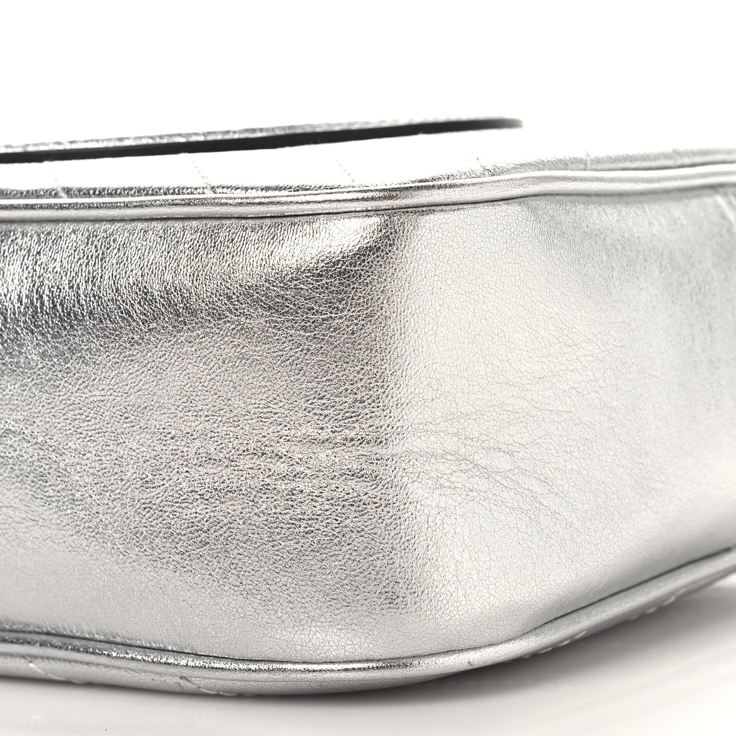 Metallic Sakai Be Green Calfskin Diagonal Stitched Small Blondie Shoulder Bag Silver