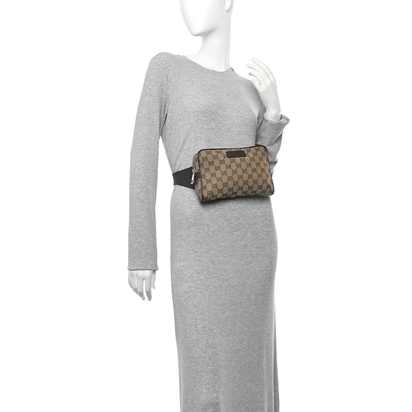 This is an authentic GUCCI Monogram Belt Bag in Dark Brown. This chic belt bag is finely crafted of classic brown on beige Gucci GG monogram canvas and brown leather trim. The bag features a silver top zipper that opens to a spacious brown fabric with a patch pocket.Follow this item for alerts. Gucci is a registered trademark of Gucci. FASHIONPHILE is not affiliated with Gucci.