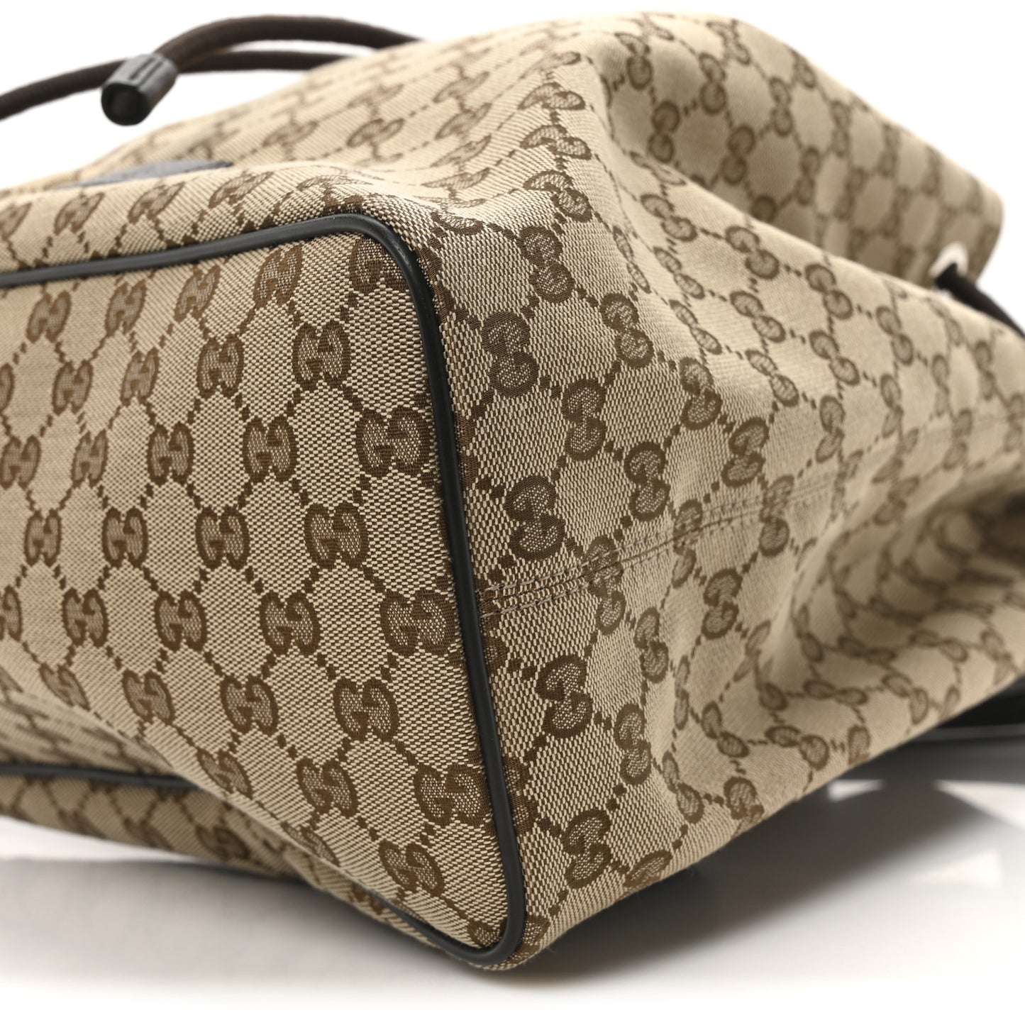 Gucci/ Bags/ Shoulder Bags /Gucci Monogram Dollar Calfskin O Drawstring Backpack Beige Ebony Testa di Moro Dark Chocolate