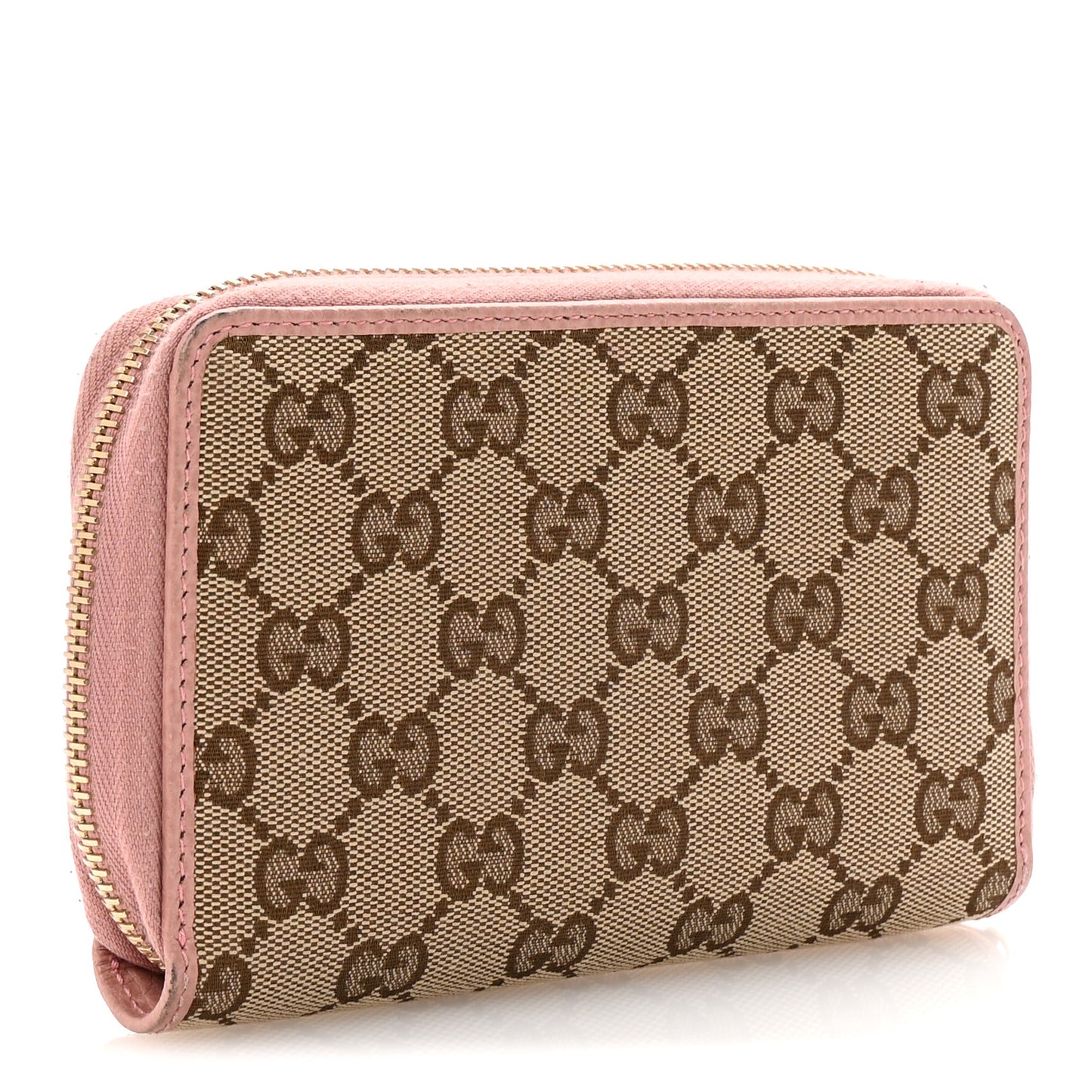 This is an authentic GUCCI Monogram Zip Around Wallet in Pink. This classic wallet is crafted of GG monogram canvas and leather in pink. The wallet has a wrap-around light gold zipper that opens to a compact pink leather interior with a card slot panel, patch pockets, a billfold, and coin compartment.Follow this item for alerts. Gucci is a registered trademark of Gucci. FASHIONPHILE is not affiliated with Gucci.