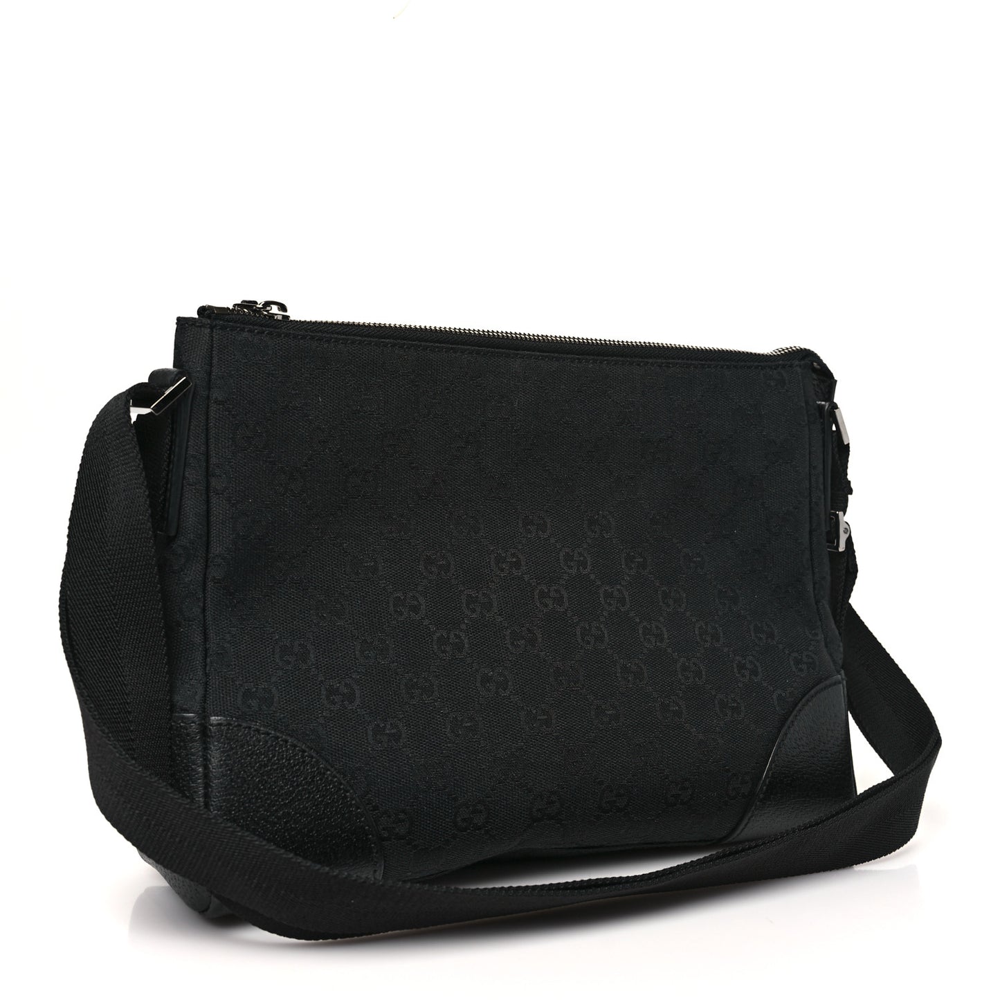 This is an authentic GUCCI Monogram Joy Messenger Bag in Black. This stylish bag is crafted of classic black Gucci GG monogram canvas. This bag features a complimentary black body strap that can be worn on the shoulder or cross body, polished silver hardware, and black leather accents. The zip top opens to a black fabric interior with a pocket.Follow this item for alerts. Gucci is a registered trademark of Gucci. FASHIONPHILE is not affiliated with Gucci.