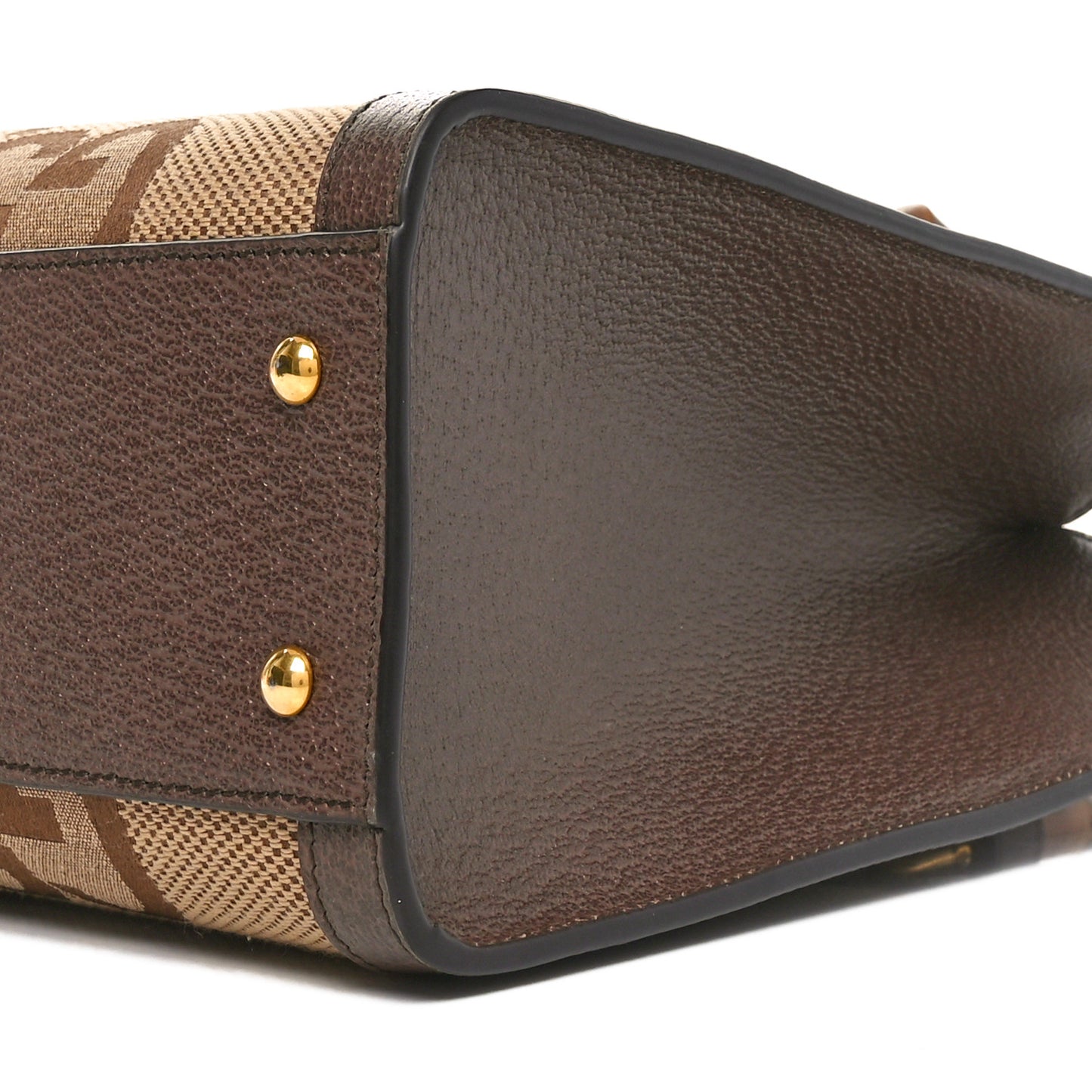 Monogram Jumbo GG Textured Dollar Calfskin Small Diana Tote Bag Camel Ebony New Acero