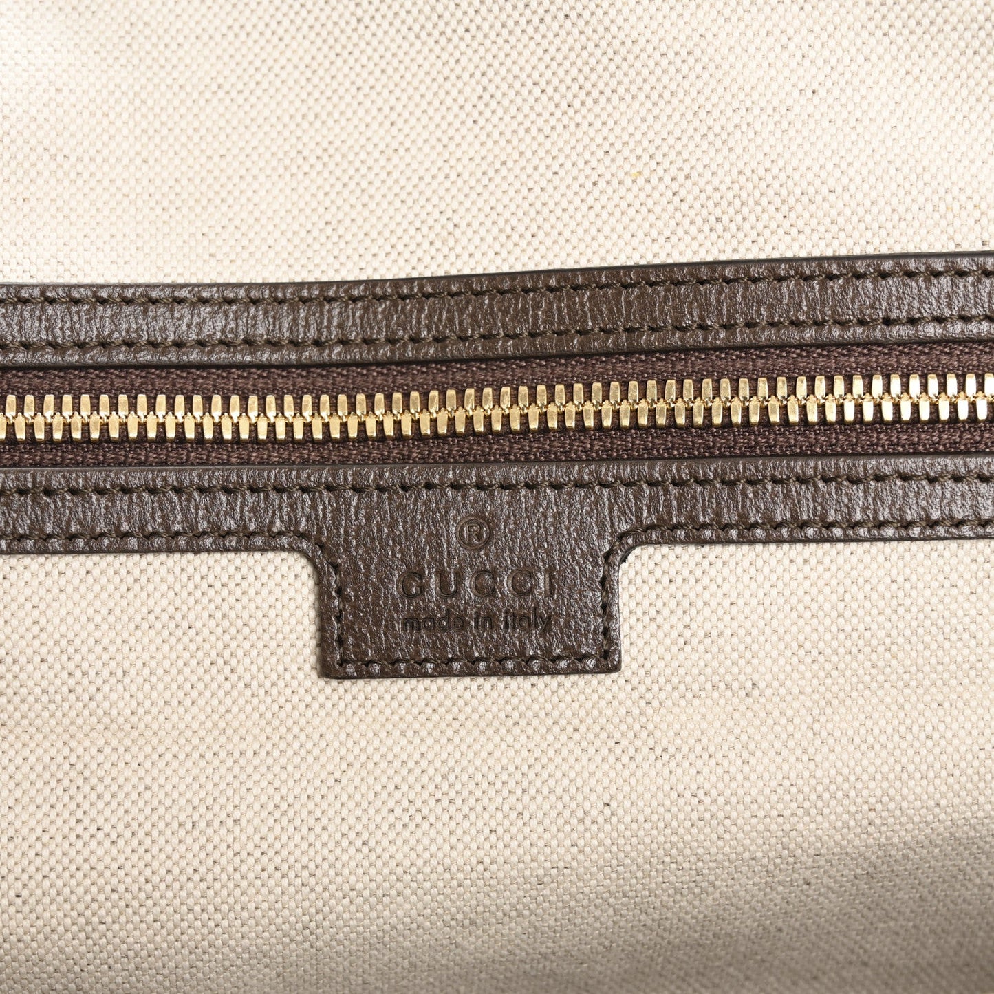 Gucci/ Bags/ Travel & Luggage /Gucci Monogram Jumbo GG Textured Dollar Calfskin Web Medium Duffle Bag Camel Ebony