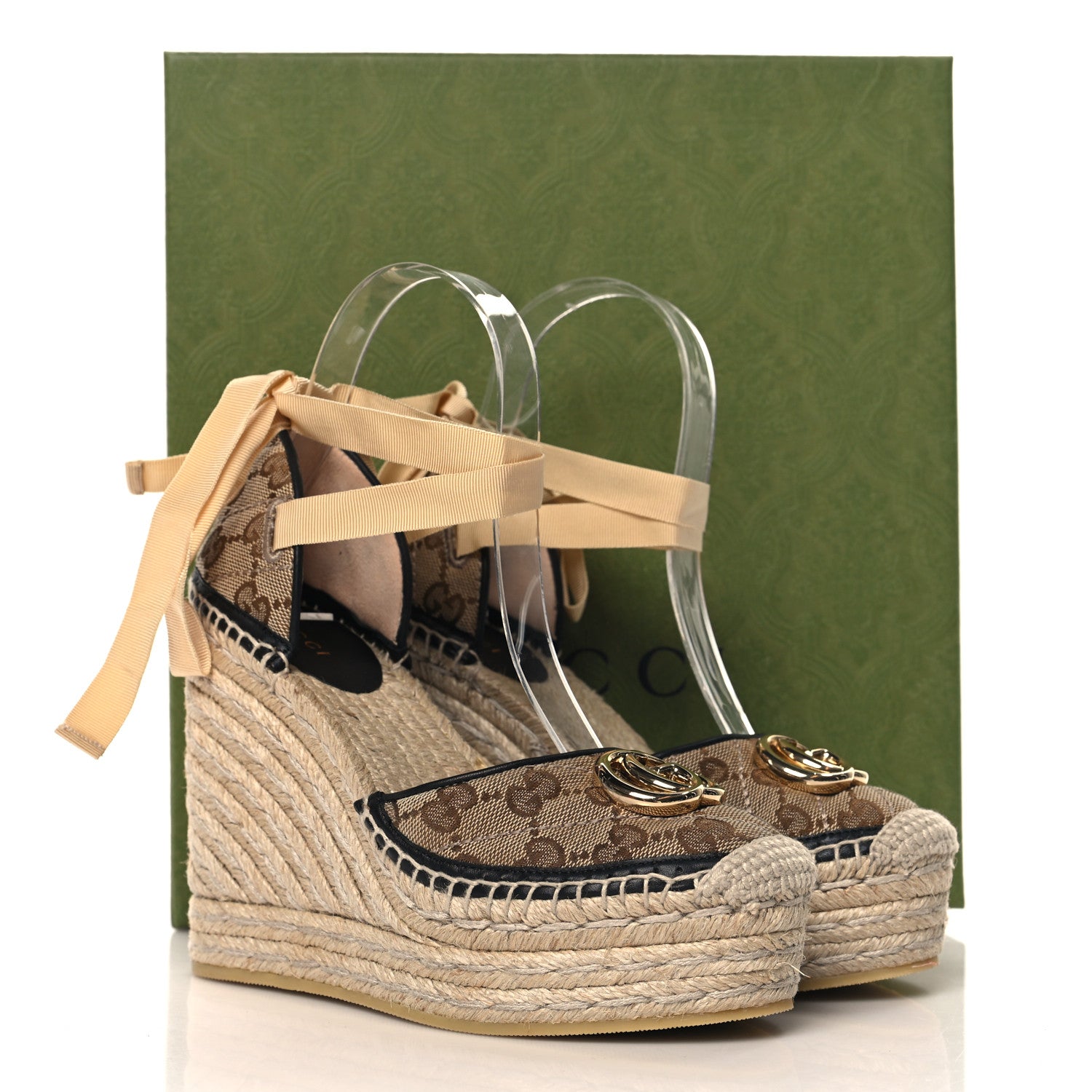 Gucci/ Accessories/ Shoes /Gucci Monogram Matelasse GG Marmont Ankle Wrap Platform 35/120mm Espadrille Wedges 35.5 35.5 Beige Ebony Black Sand Storm