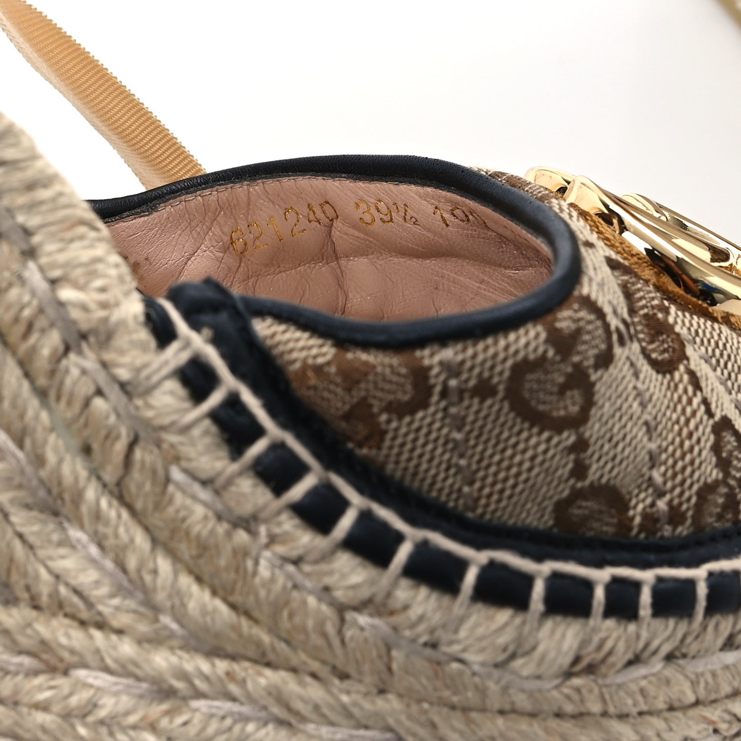 Monogram Matelasse GG Marmont Ankle Wrap Platform 35/120mm Espadrille Wedges 39.5 Beige Ebony Black Sand Storm